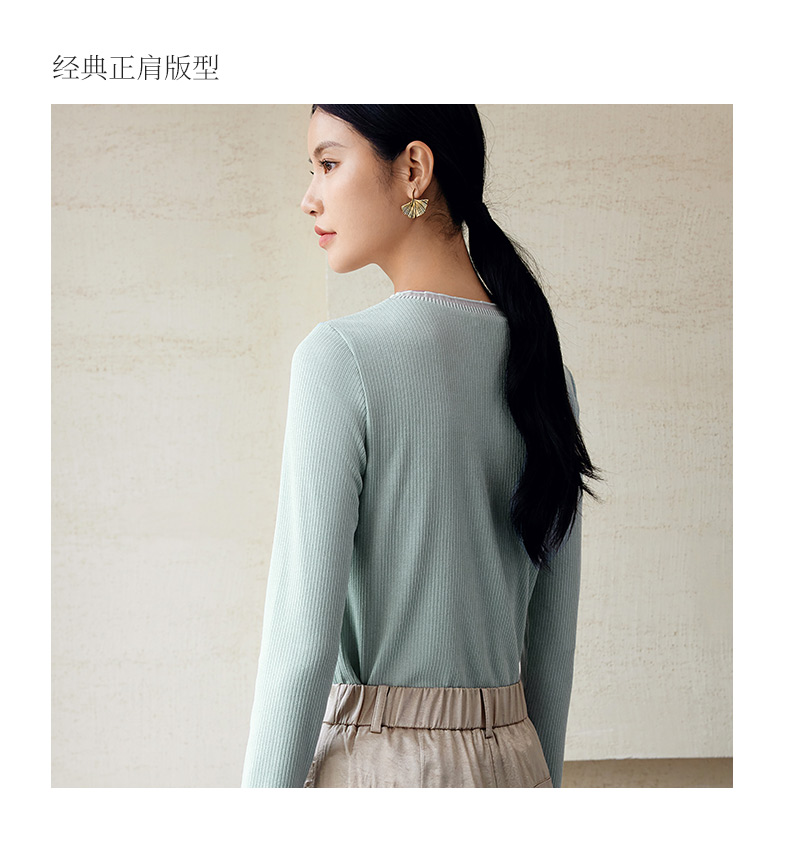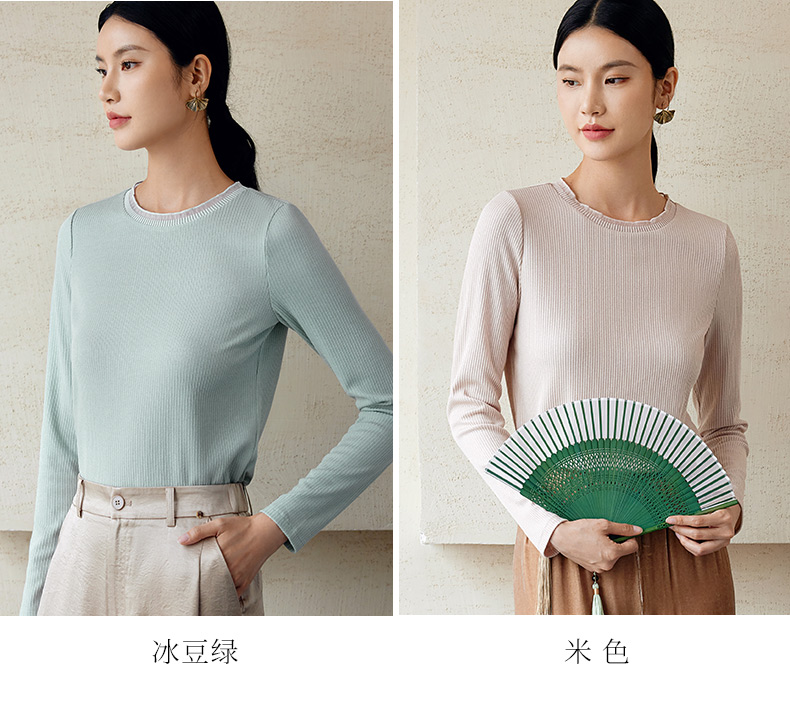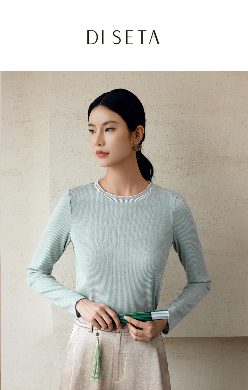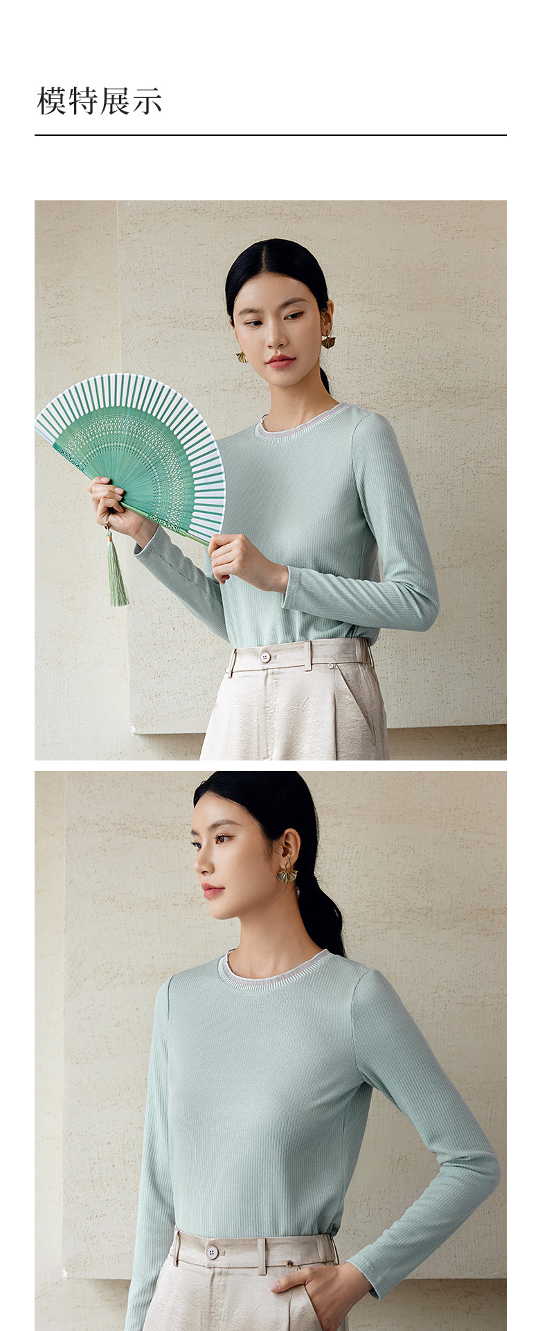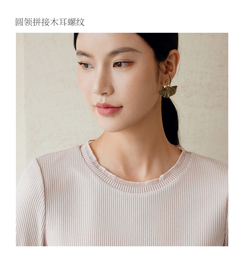 玳莎拼接设计感圆领针织衫女2024新款显瘦纯色内搭长袖上衣 EC32303