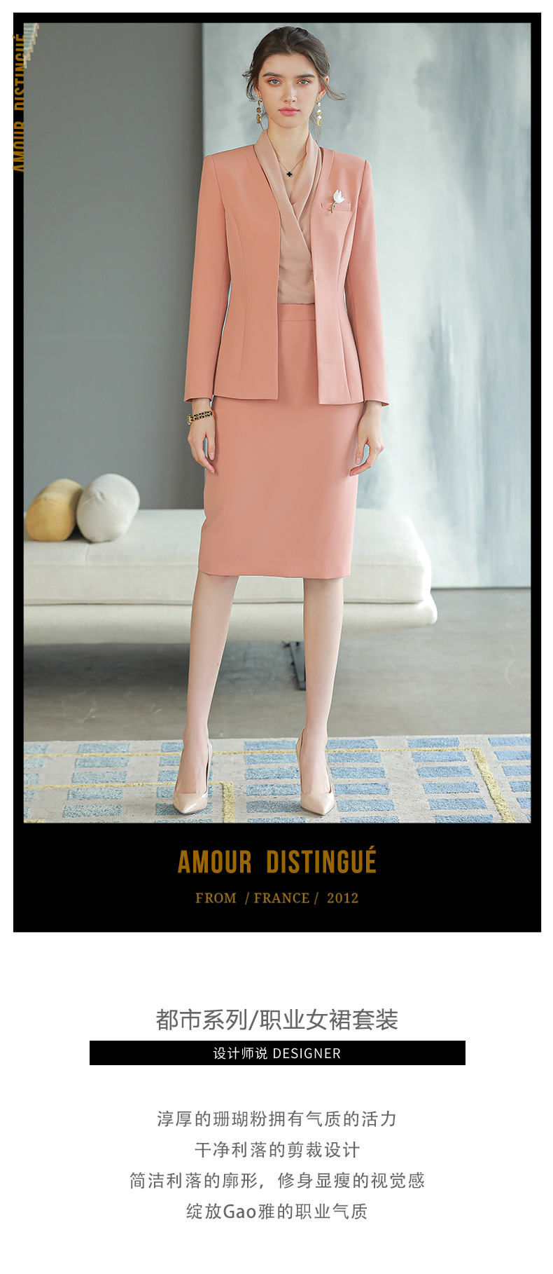 AD气质珊瑚粉色职业装套装女主持人面试正装高端酒店经理工作服秋