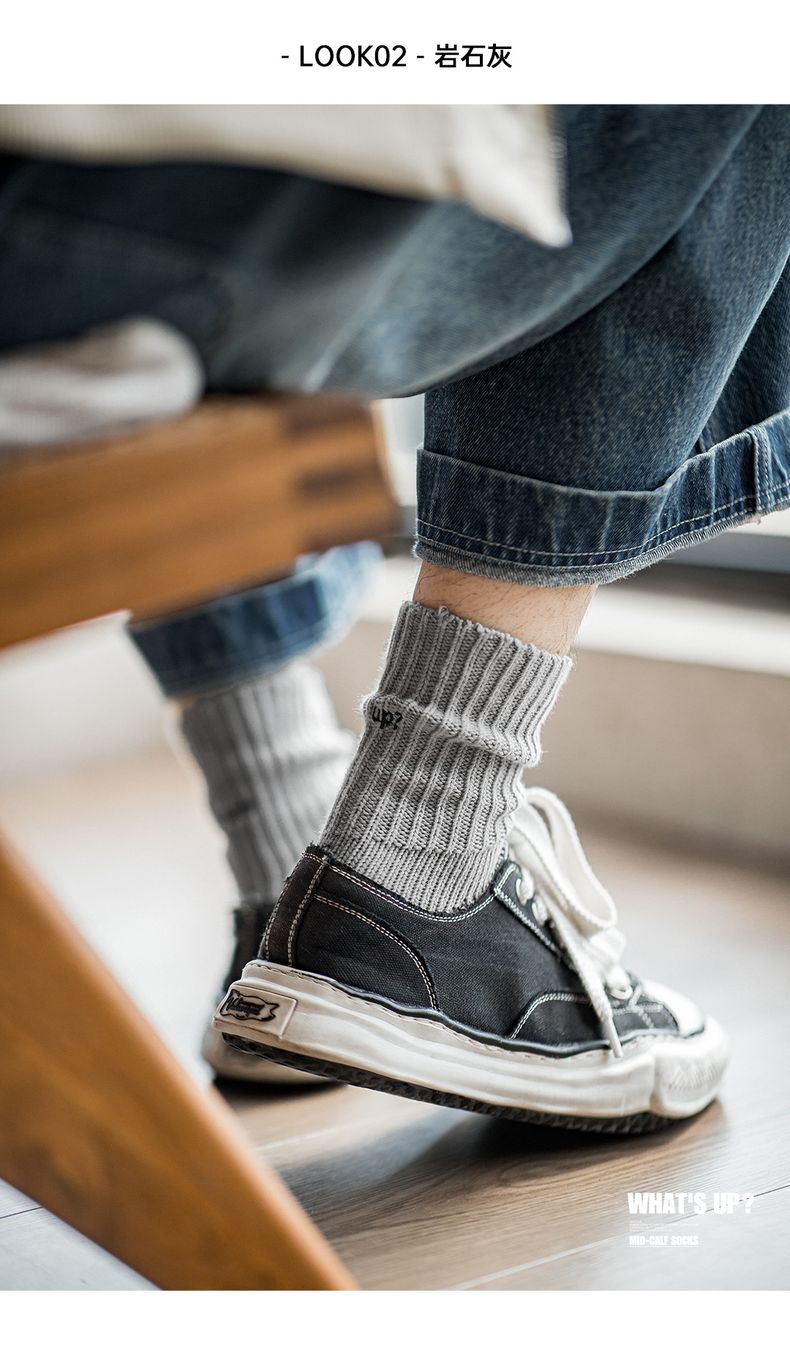 马登工装美式复古箭头刺绣中筒袜纯色透气运动篮球针织长袜子男棉