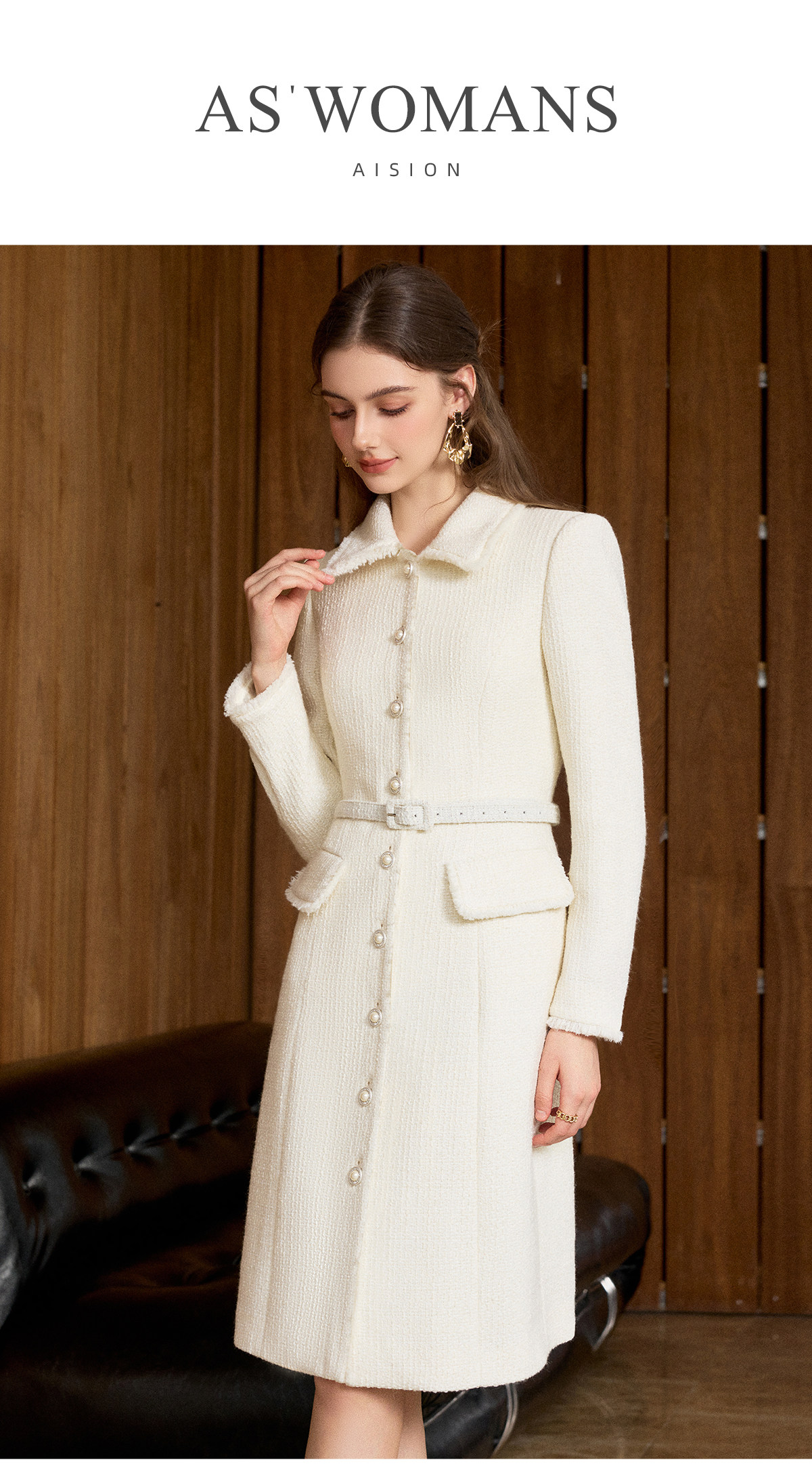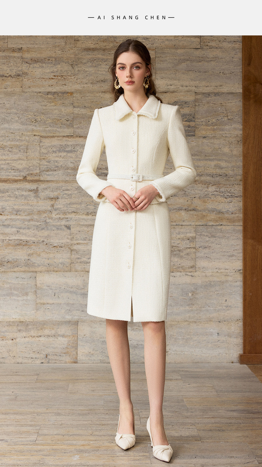 艾尚臣小洋装富家千金肌理感羊毛小香风连衣裙女中长款气质裙秋冬