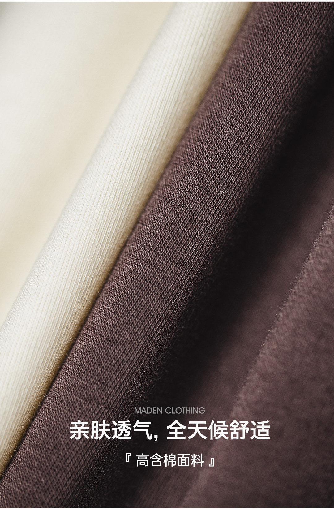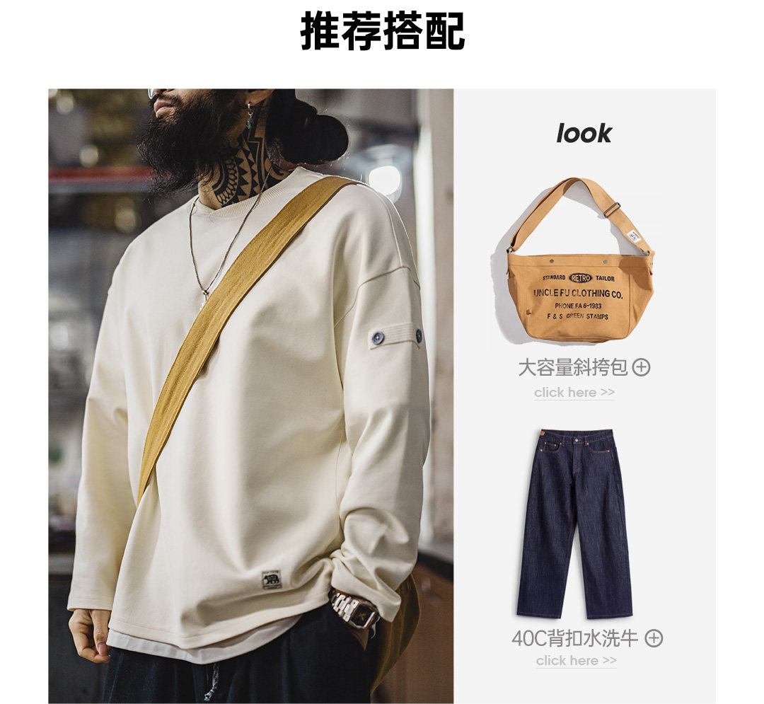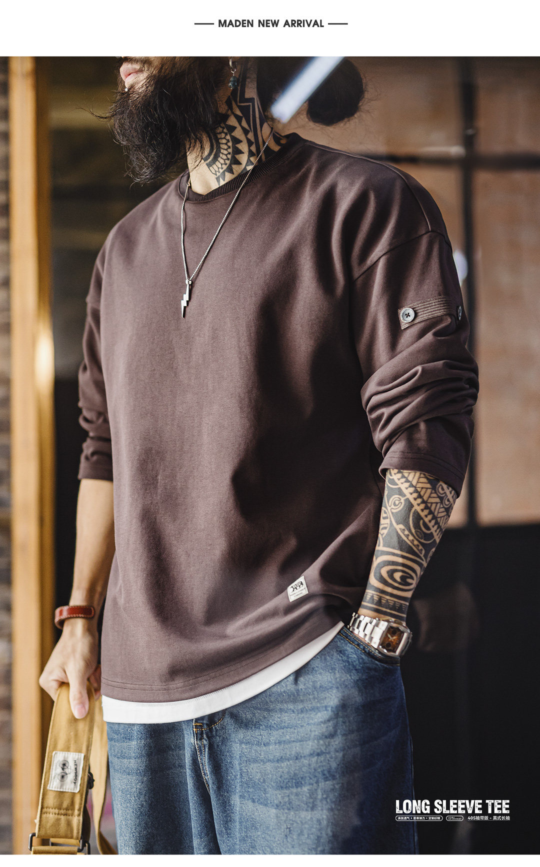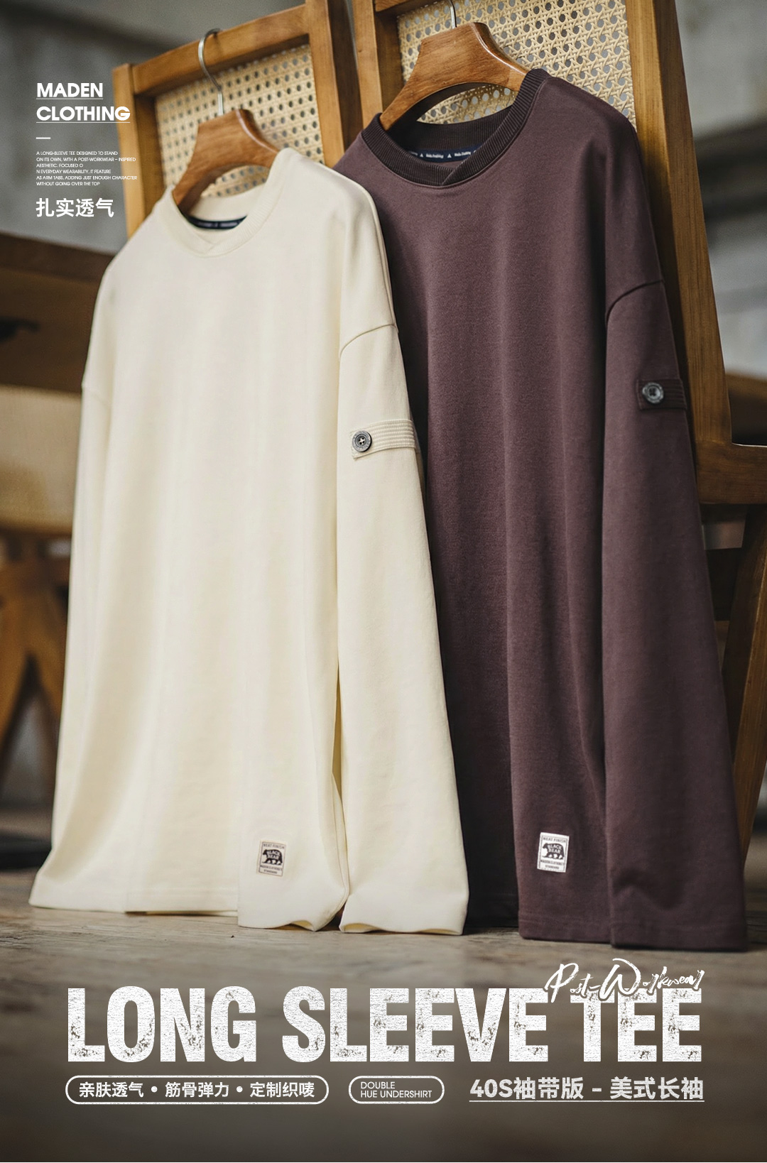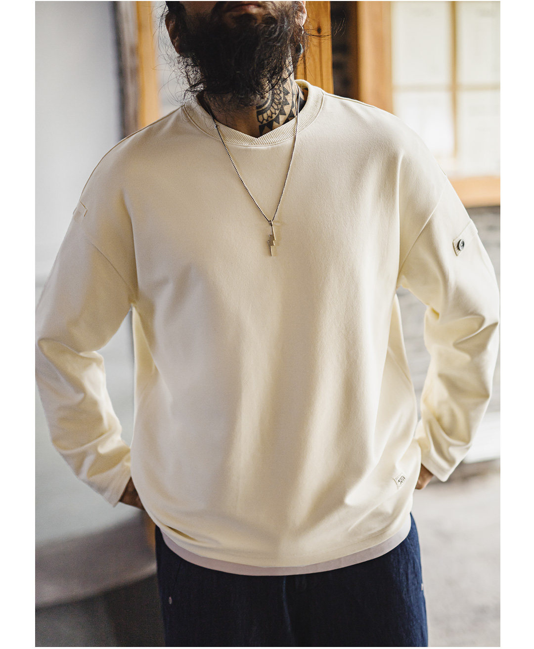 马登工装美式复古长袖T恤棉V领套头白色宽松垂感外穿卫衣男款春