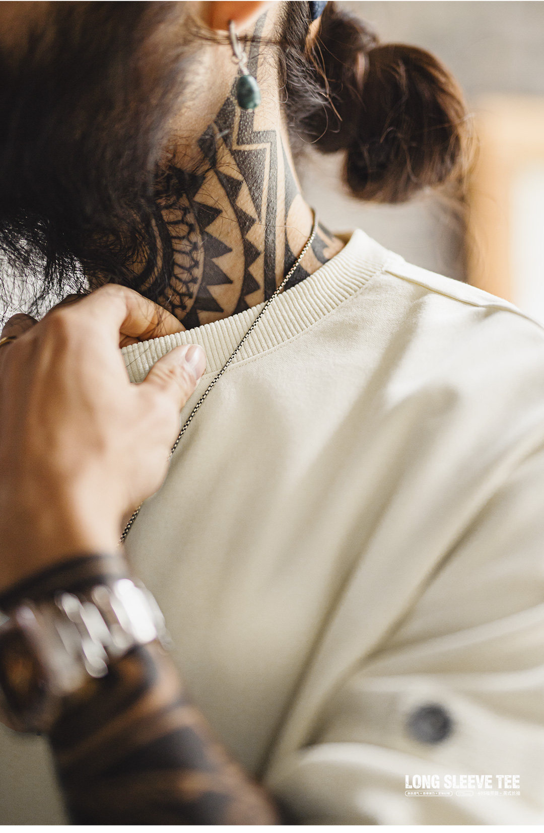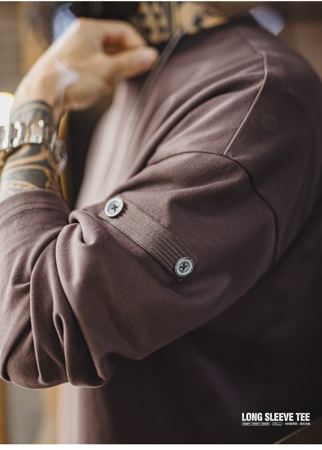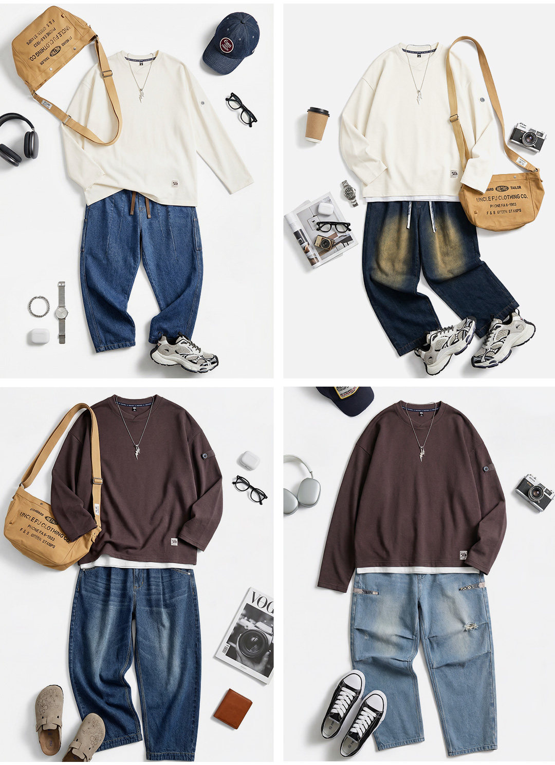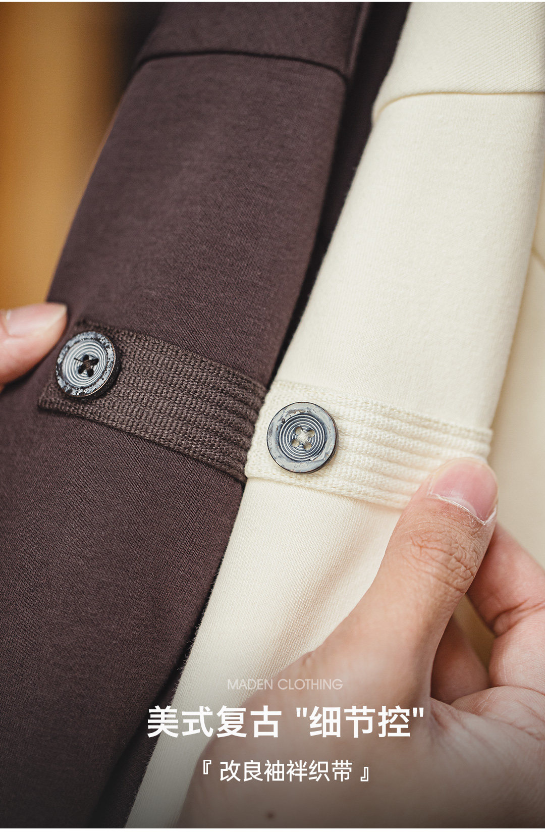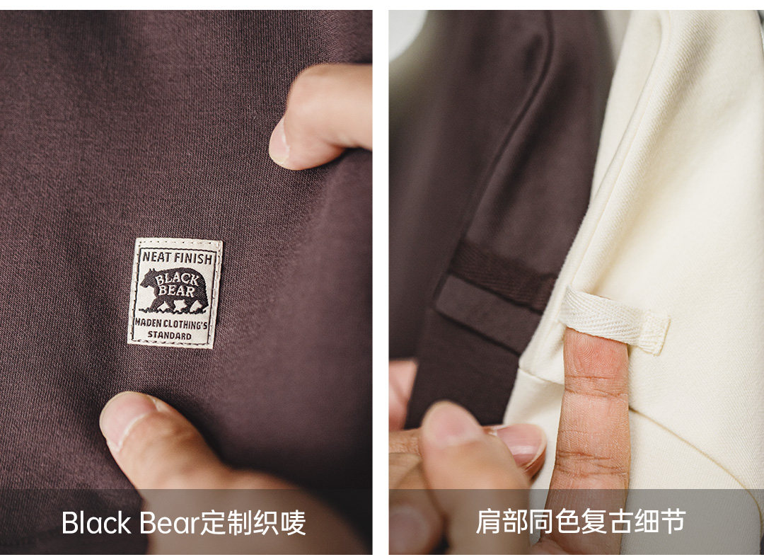 马登工装美式复古长袖T恤棉V领套头白色宽松垂感外穿卫衣男款春