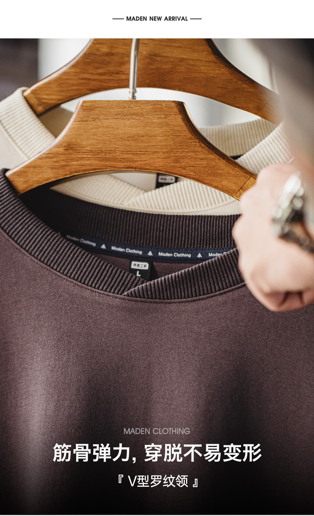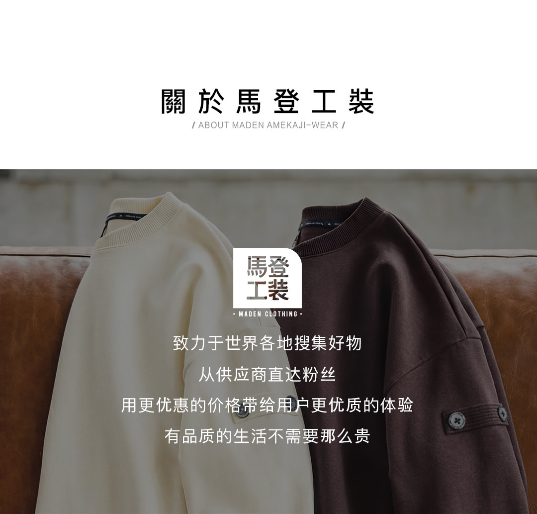 马登工装美式新疆棉卫衣紫色圆领套头无帽外穿宽松长袖外套男款春