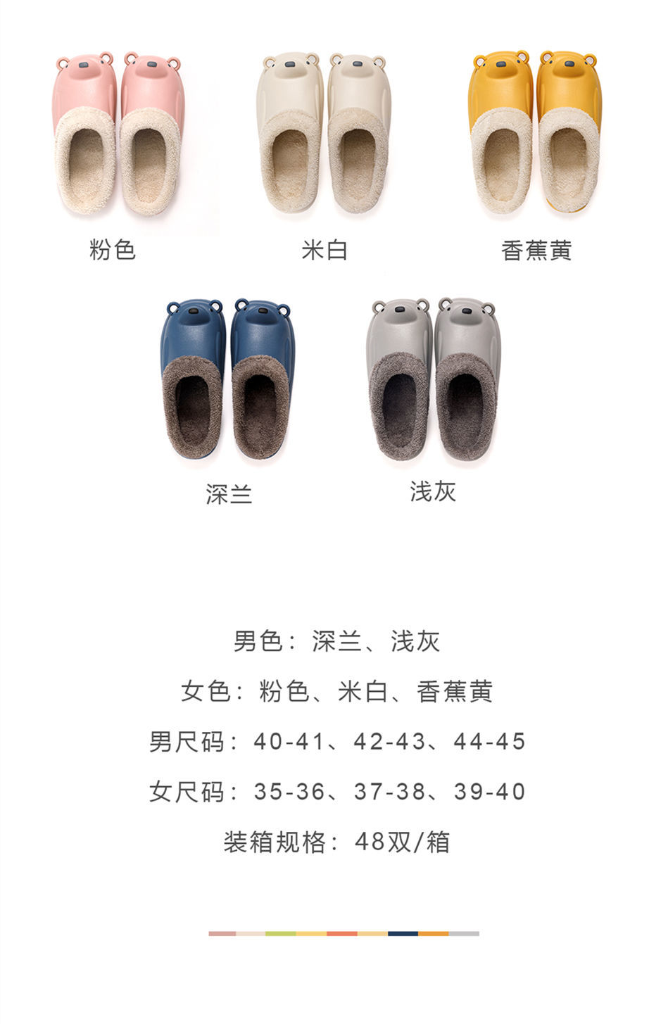 新款冬季棉拖鞋女家居家鞋舒服防水棉拖防滑保暖卡通小熊拖鞋