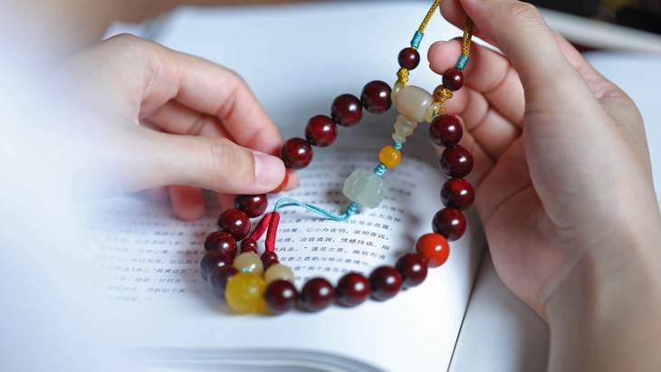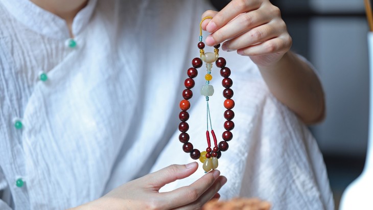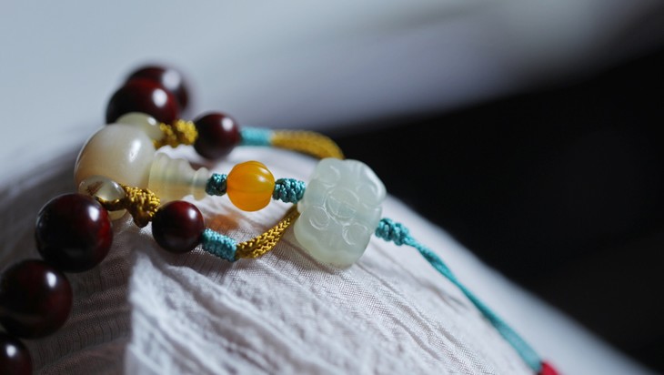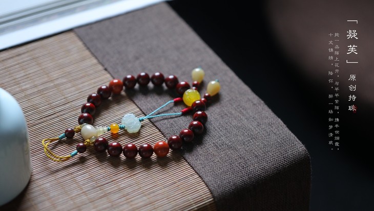 这款宝贝极具创意,是闻琴和梅林花费了很久才制作而成的,寓意着凝香含神,彰显古韵。宝贝参考清代的手持的样式,配上黄玉、南红等精品装饰,韵味十足。手串的料质非常细腻,搭配之后更加增添古韵古香,特别好看。宝贝适合大家日常的把玩和欣赏,佩戴出来很有面子,送礼也不错!