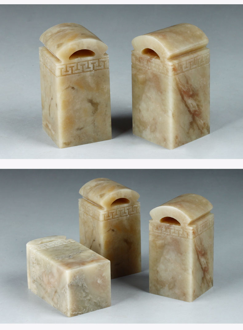 【金石印坊】伊犁冻石瓦钮回纹方章2.5*2.5*5cm配锦盒印绳