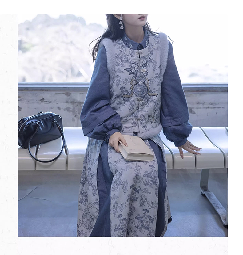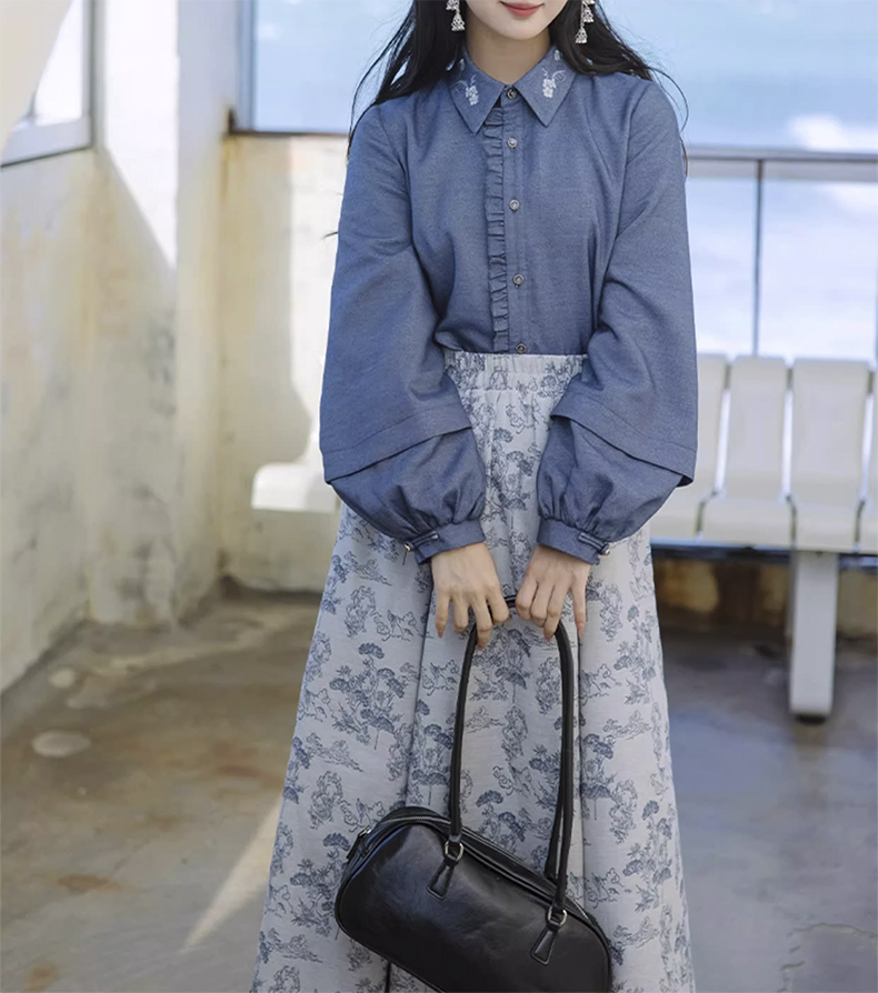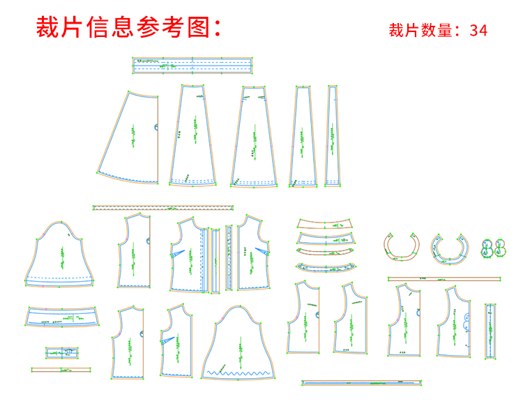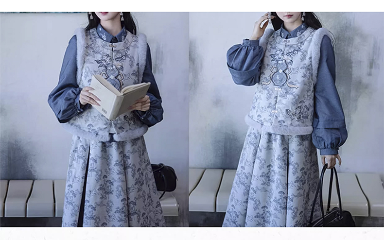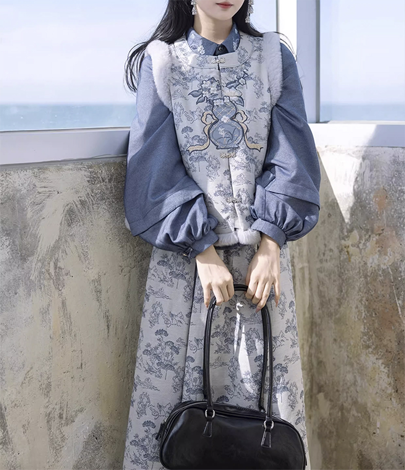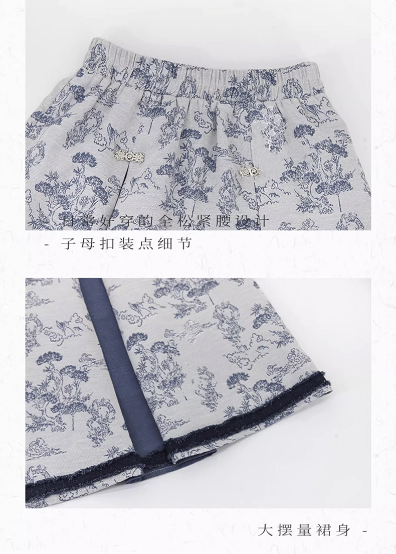 裁缝学苑AH74国风中式灯笼袖翻领衬衣纸样马甲折裥裙牛仔打版裁剪图
