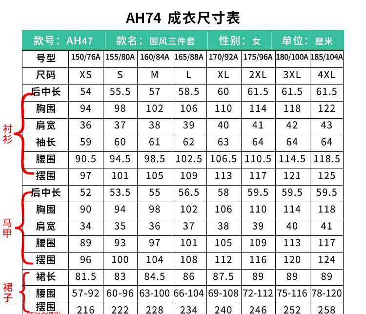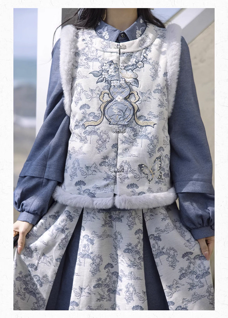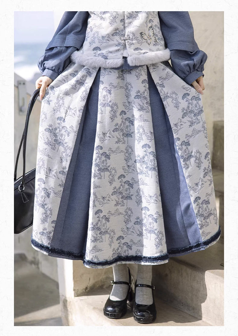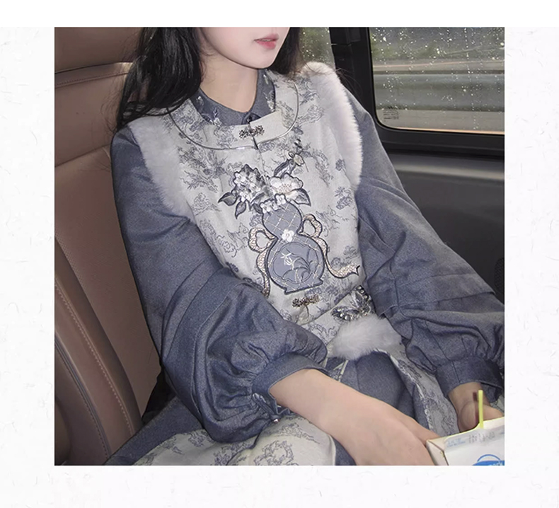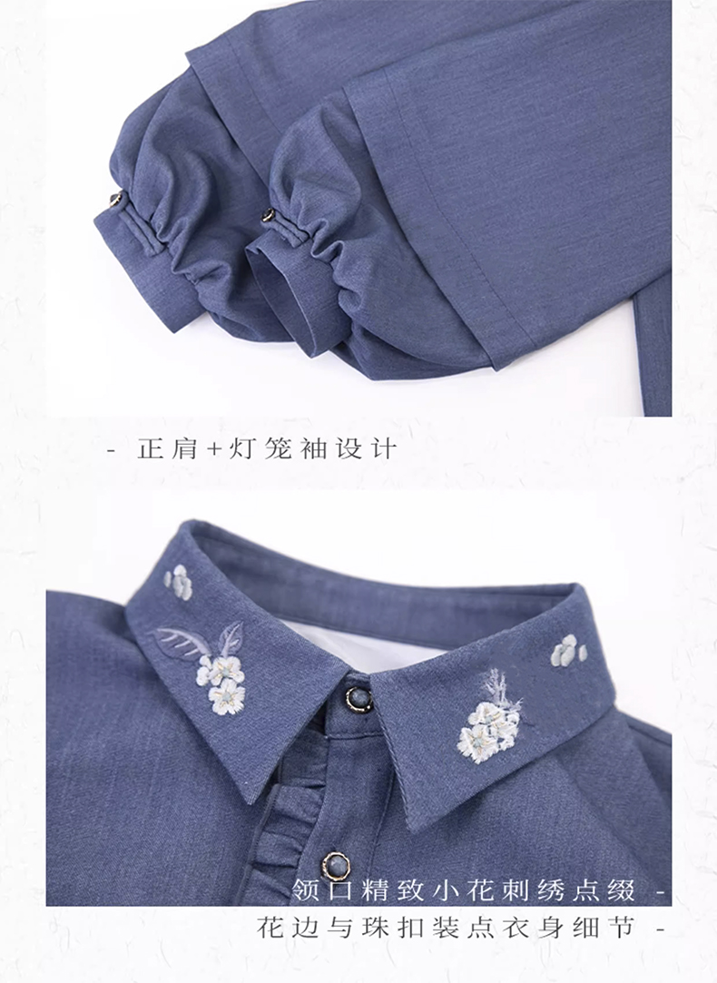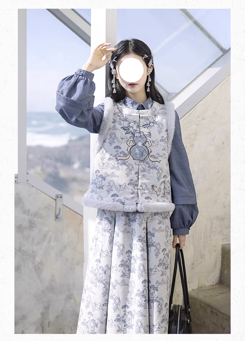 裁缝学苑AH74国风中式灯笼袖翻领衬衣纸样马甲折裥裙牛仔打版裁剪图
