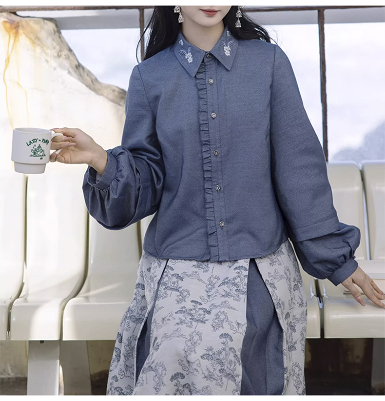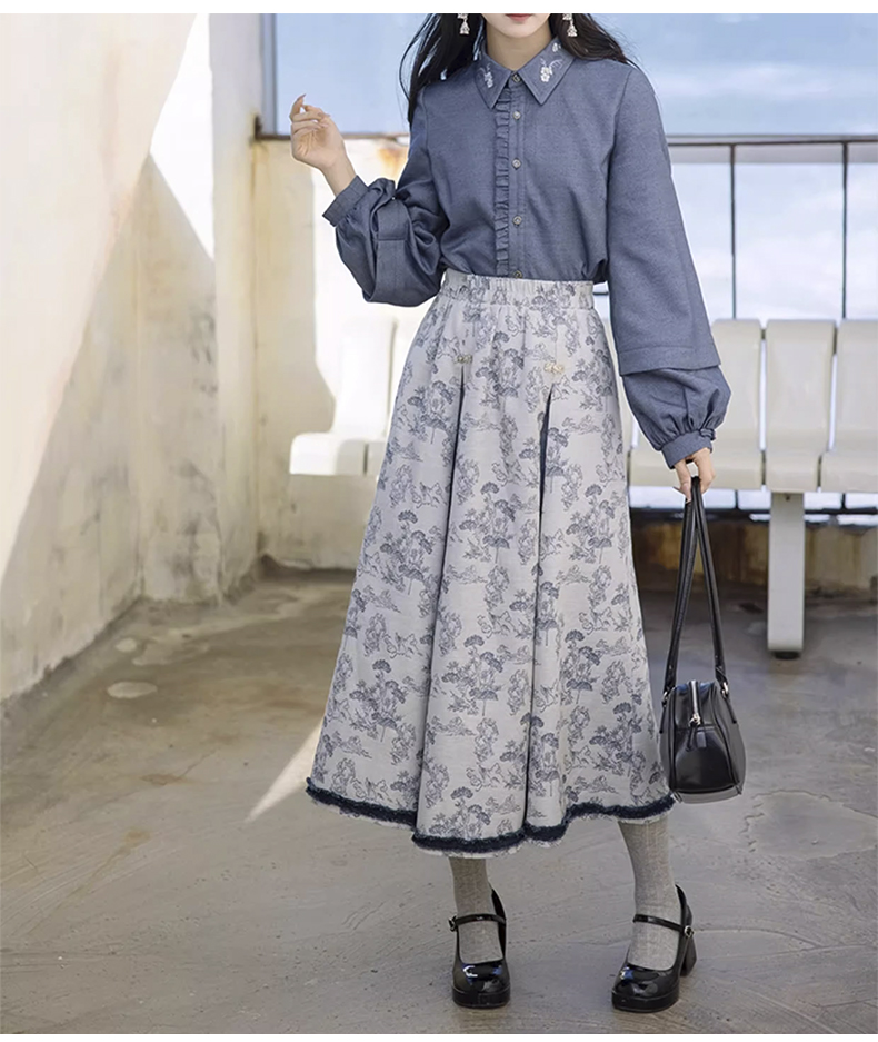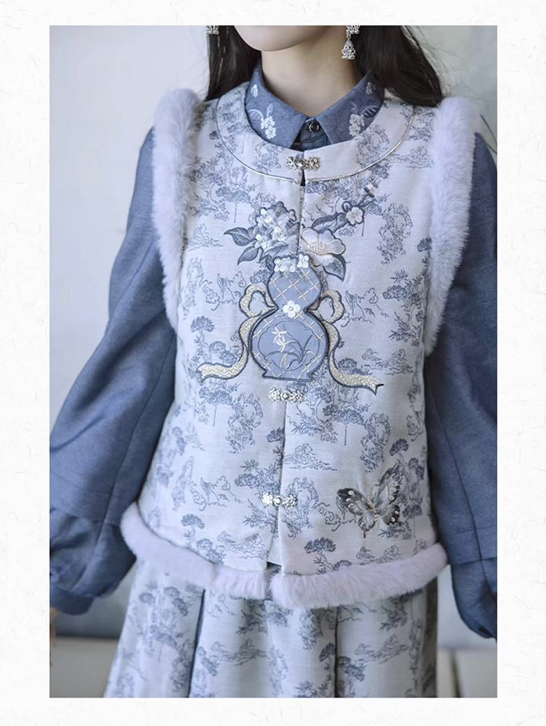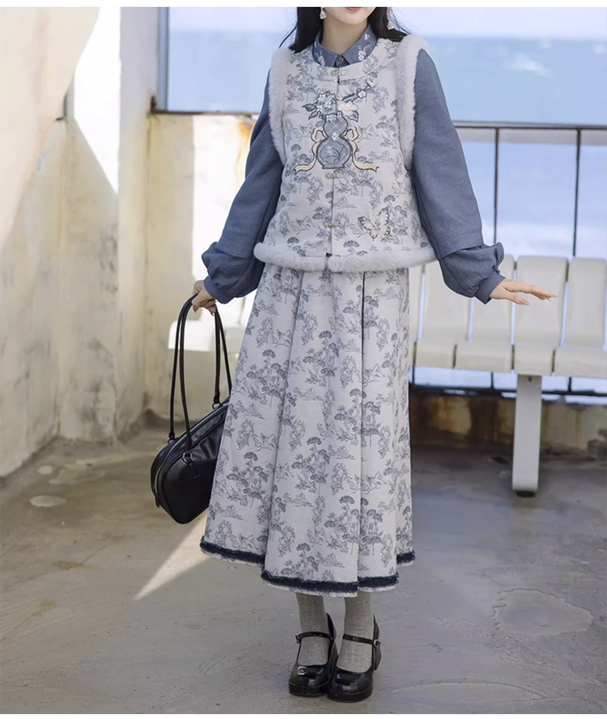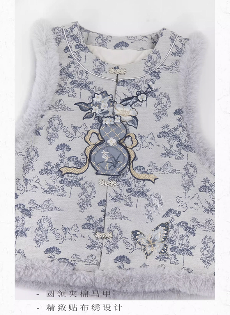 裁缝学苑AH74国风中式灯笼袖翻领衬衣纸样马甲折裥裙牛仔打版裁剪图