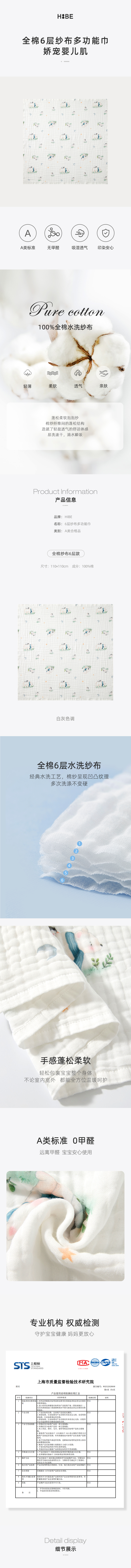 怡比萌宠星梦6层纱布多功能巾HY25AUP201白灰色调110*110cm