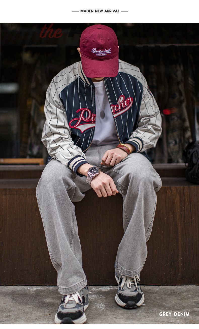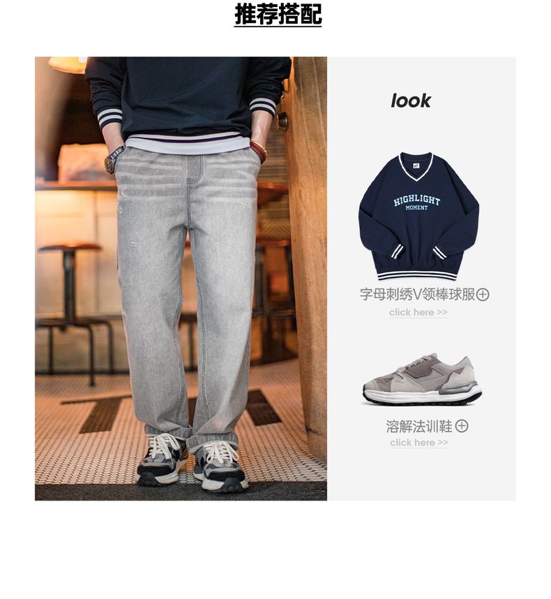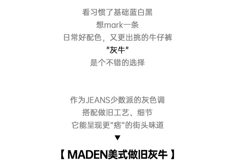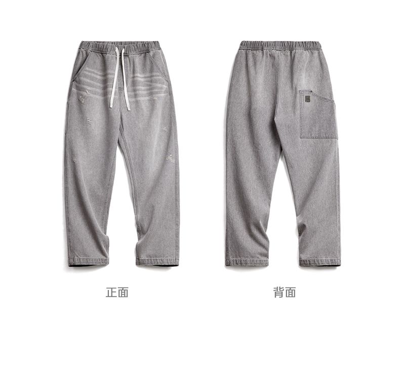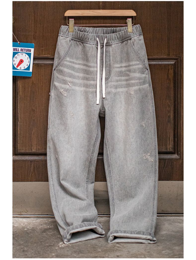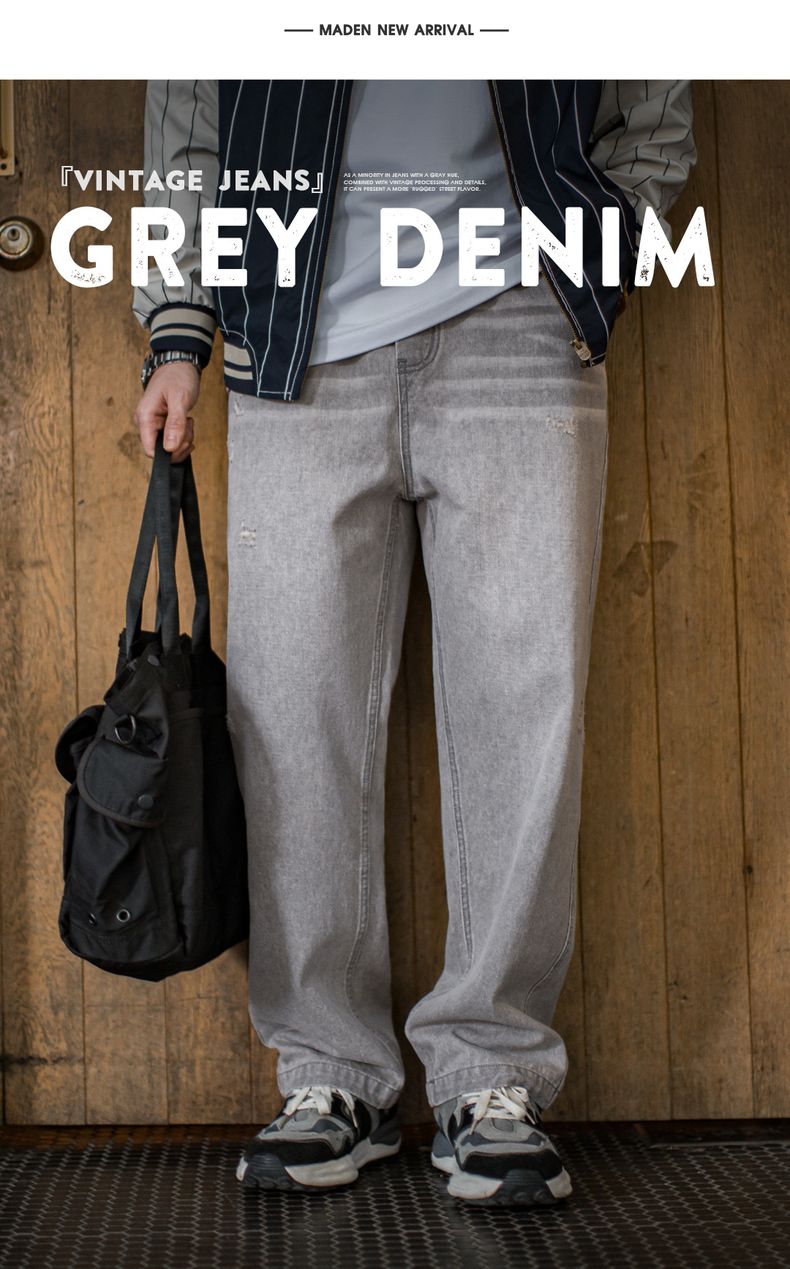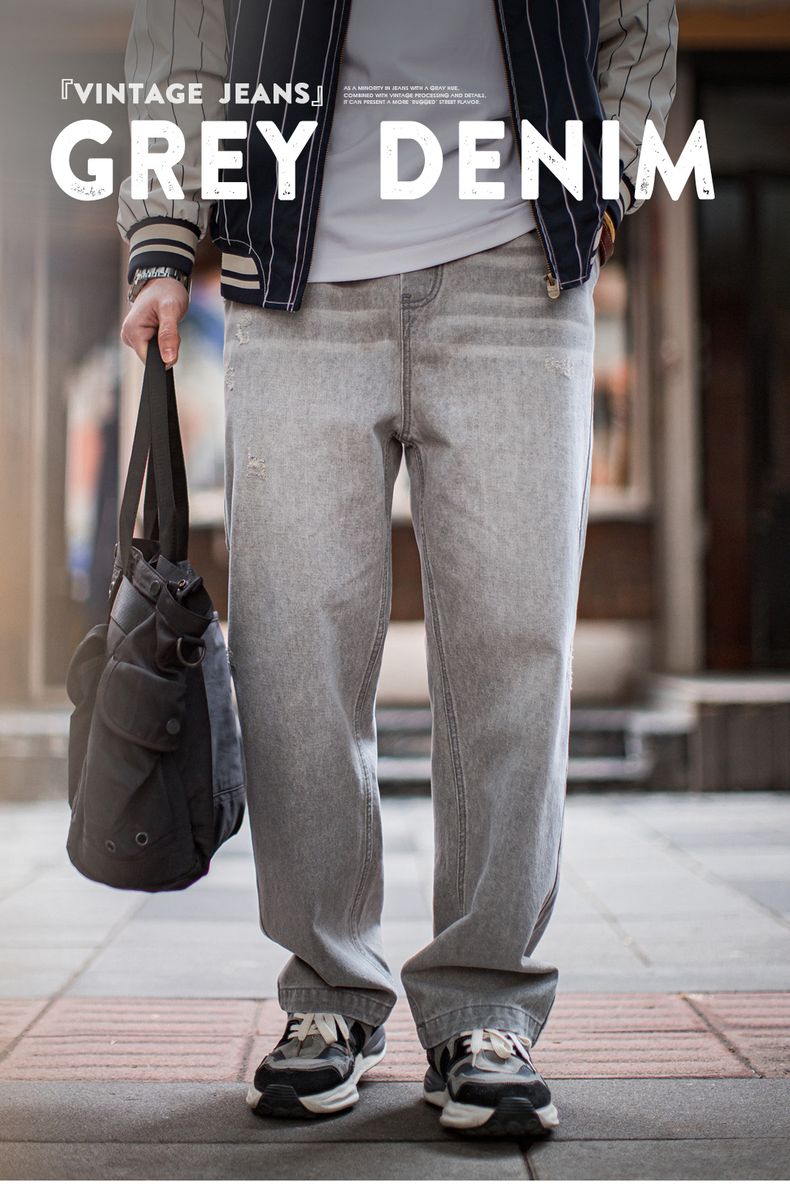 工装优选美式复古水洗做旧格雷系灰牛仔裤破洞猫须伐木直筒裤男春