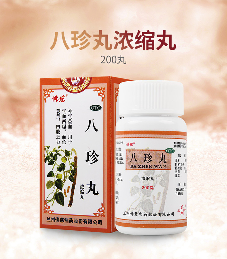 佛慈 八珍丸 200丸/盒 男女性人士补气益血 气血两虚 面色萎黄 四肢乏力非八珍液中成药品