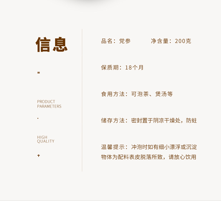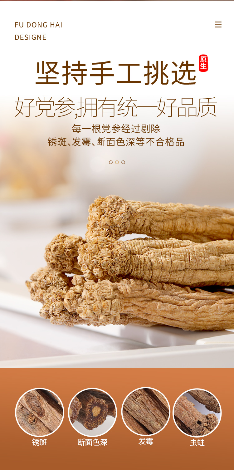 福东海 党参200克/袋 甘肃精选党参大条段 可配黄芪枸杞养生茶煲汤材料