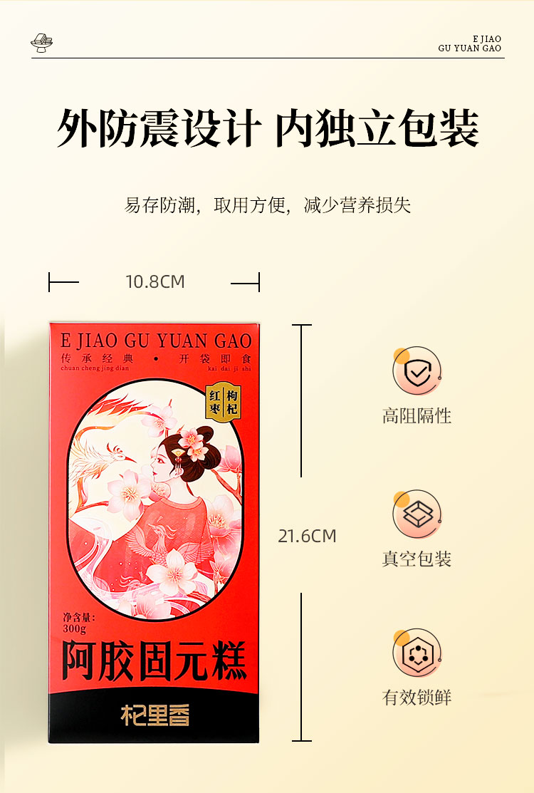 【冬季滋补】【杞里香阿胶固原糕300g】红枣枸杞味;传统原味阿胶糕选材有道 传承工艺 胶质丰富 女性 随身携带 每天吃2片阿胶固原糕阿胶糕