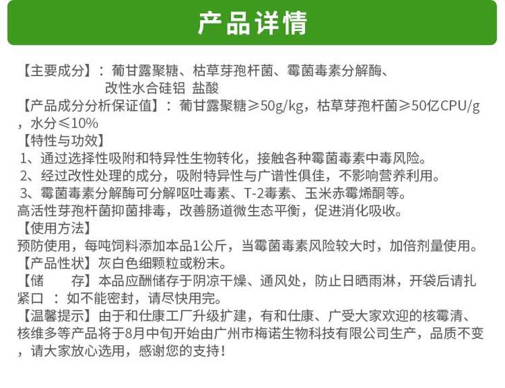 【核霉清-Z】和仕康特X吸附玉米赤霉烯酮不吸附营养成分甘露聚糖复合益生菌改性蒙脱石1公斤