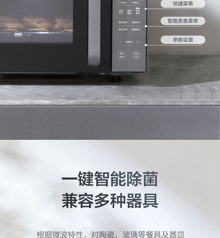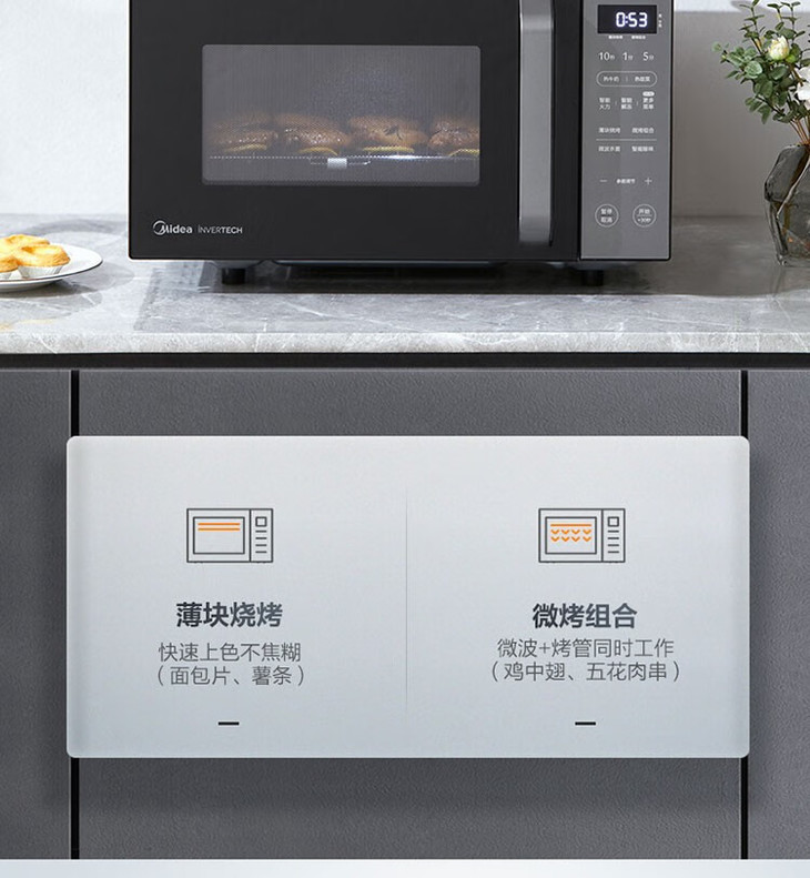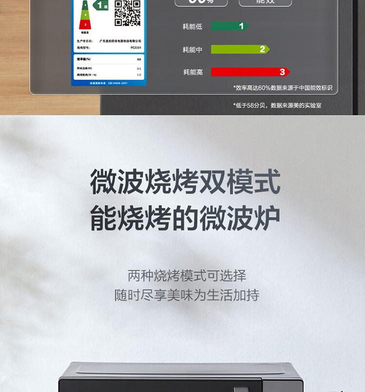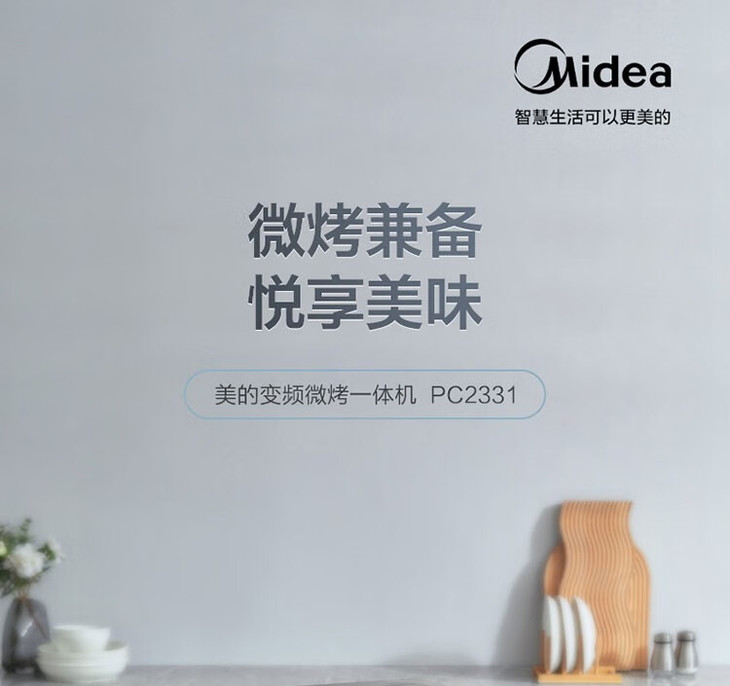 美的(Midea)变频微烤一体机 家用微波炉 内置菜单 五档火力 一级能效 智能除菌 PC2331