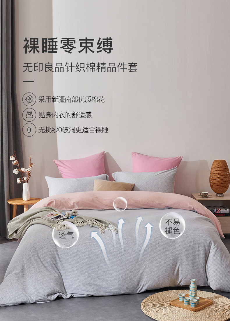 心情笔记四件套素色针织纯棉简约枕套被罩床罩 无印良品