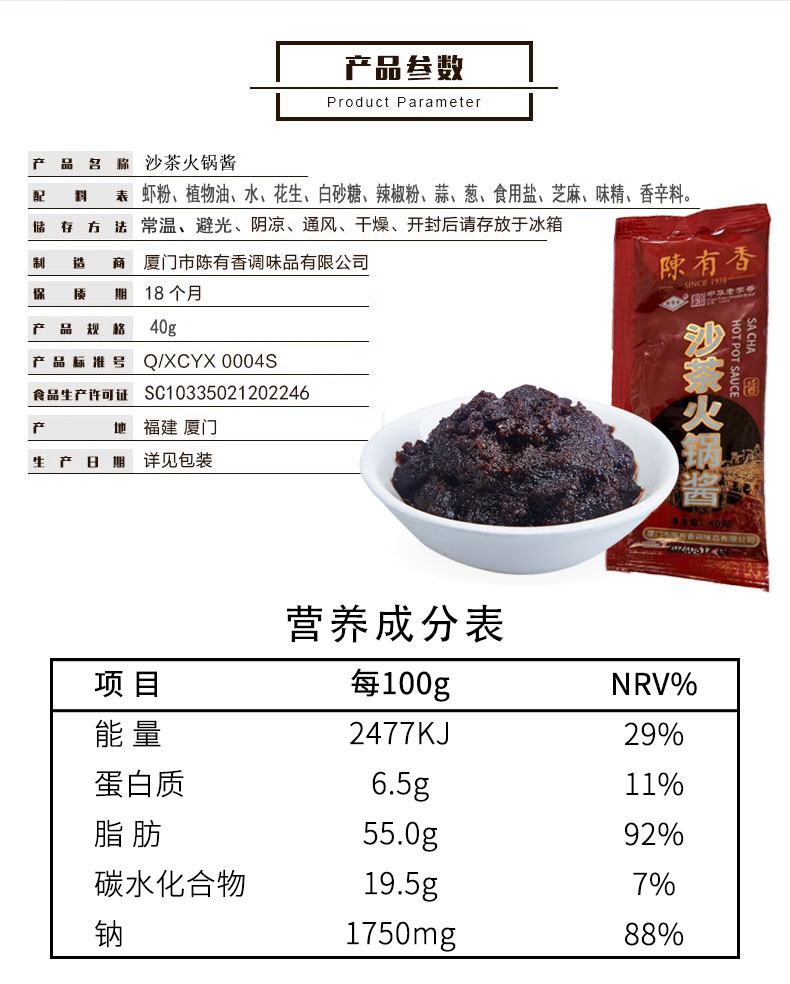陈有香沙茶火锅酱烧烤蘸酱厦门沙茶汤底底料调味酱料煮面炒饭40g/包