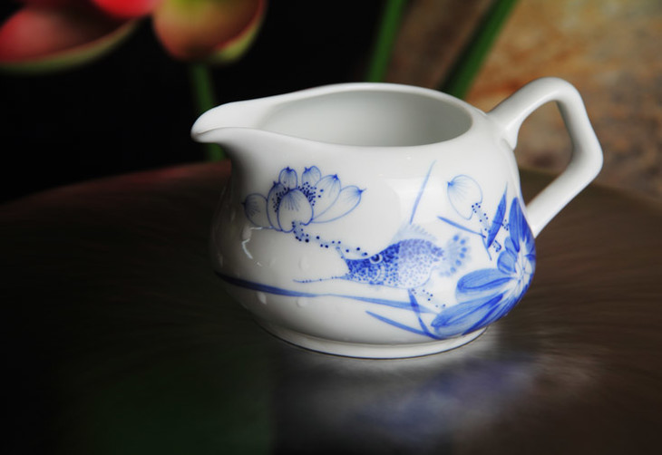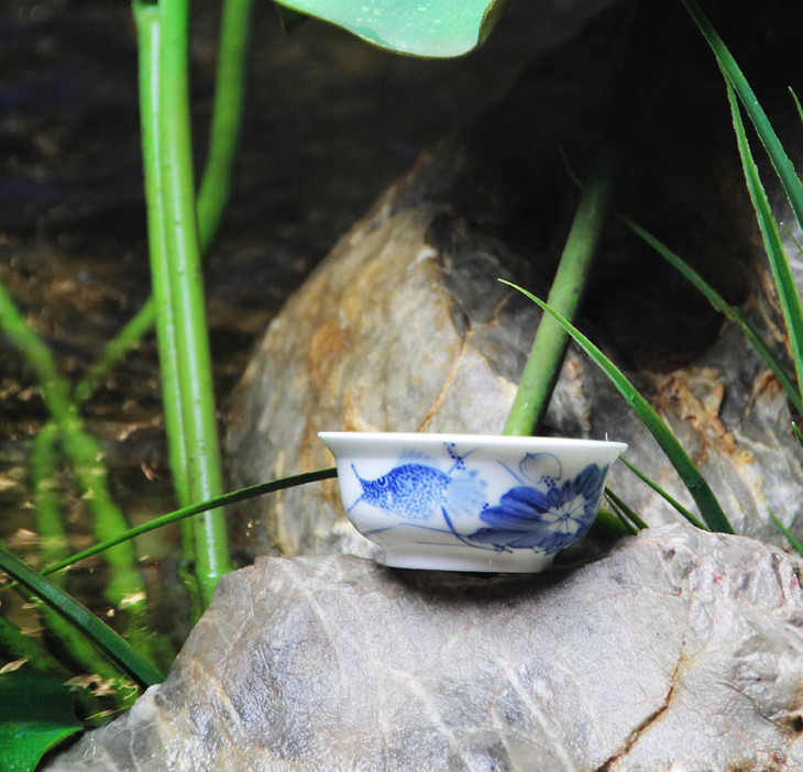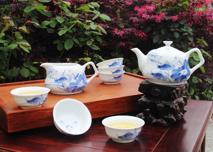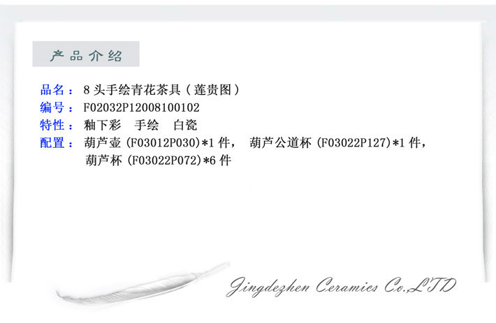 景德镇陶瓷 国瓷红叶 8头手绘青花茶具莲贵图
