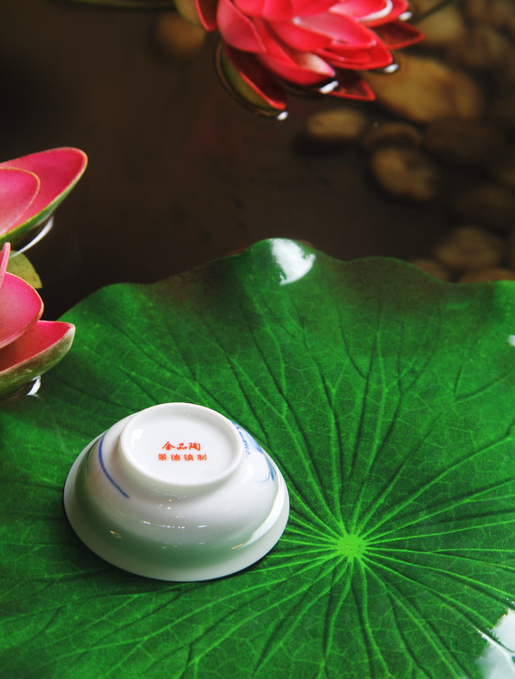 景德镇陶瓷 国瓷红叶 杯碟--中国莲