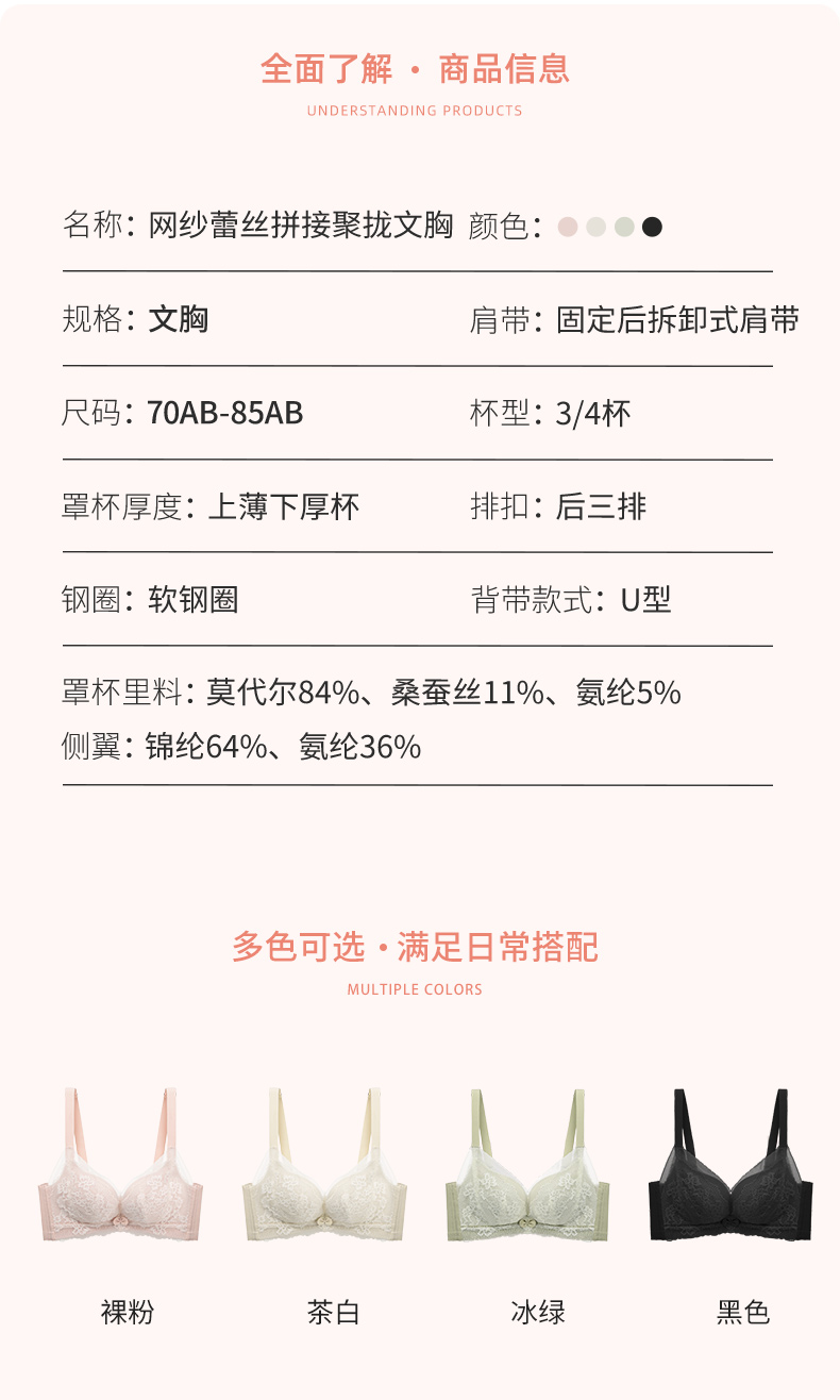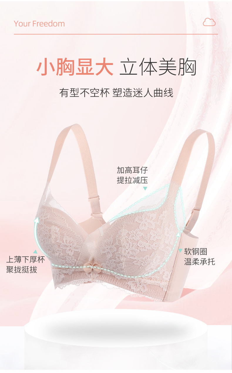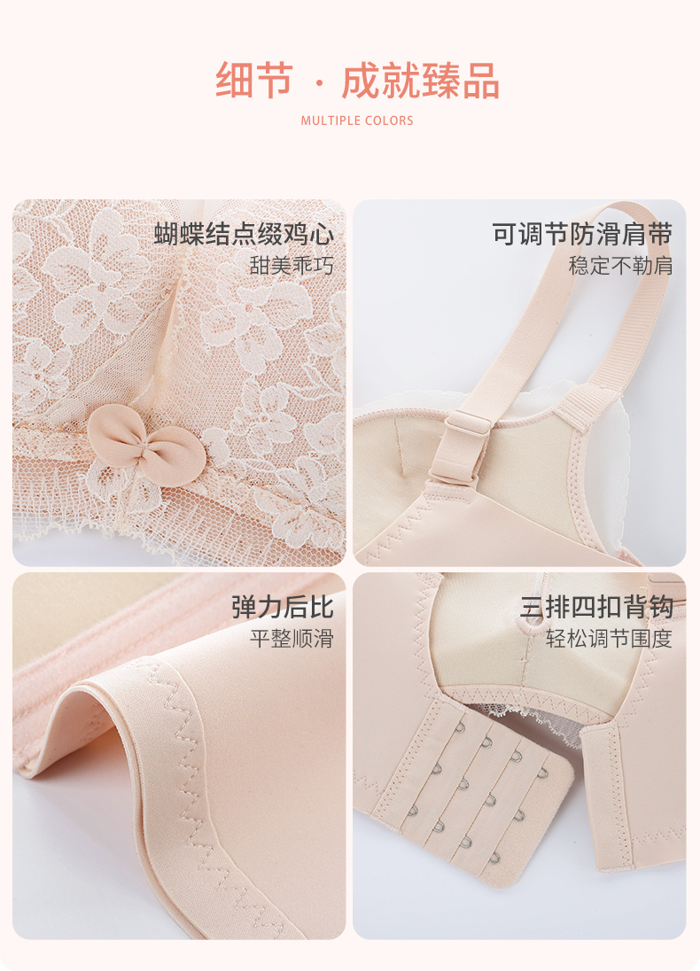 雅黛丽内衣女收副乳聚拢防下垂文胸蕾丝性感纯欲风调整型女士胸罩