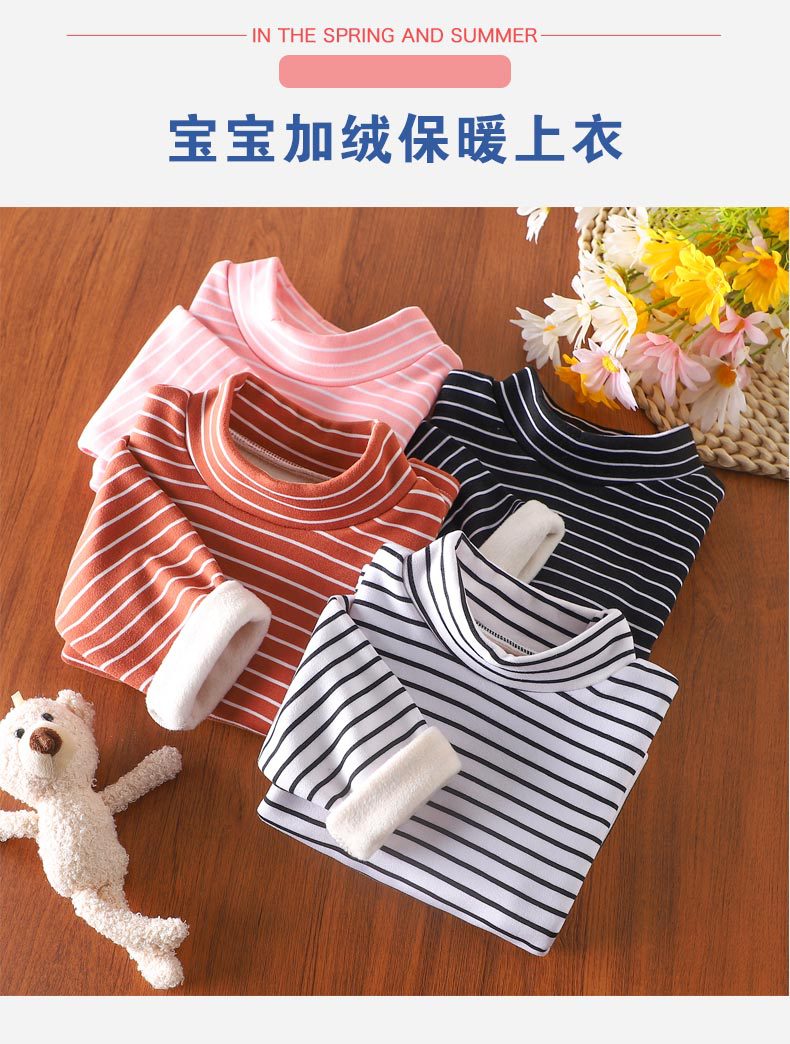 【49.9/2件任选❗️儿童保暖卫衣】甄选品质面料制作,加厚保暖牛奶丝「一触即暖」宝宝加绒保暖上衣,条纹单件高领男童打底衫,加绒加厚长袖T恤童装上衣L