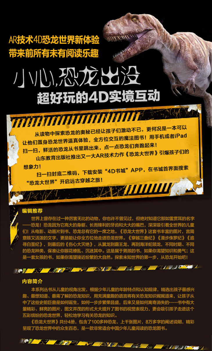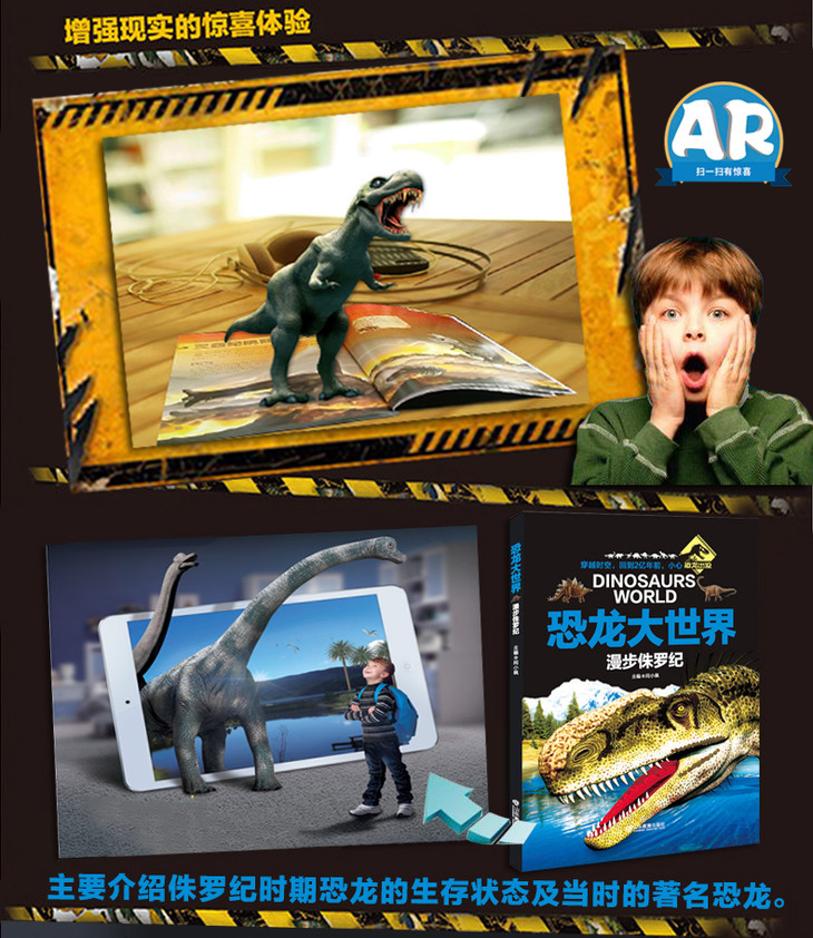 AR版 漫步侏罗纪 恐龙大世界 恐龙书全彩图少儿科普动物故事百科最新AR技术可以看动画片的4D恐龙书