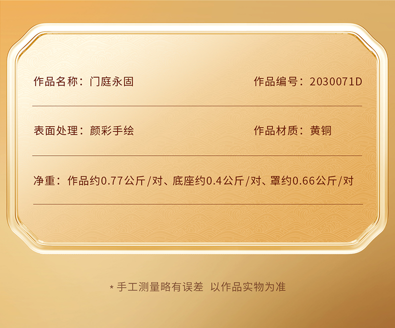 铜师傅 见微系列《门庭永固》客厅门神铜摆件 家居装饰工艺品