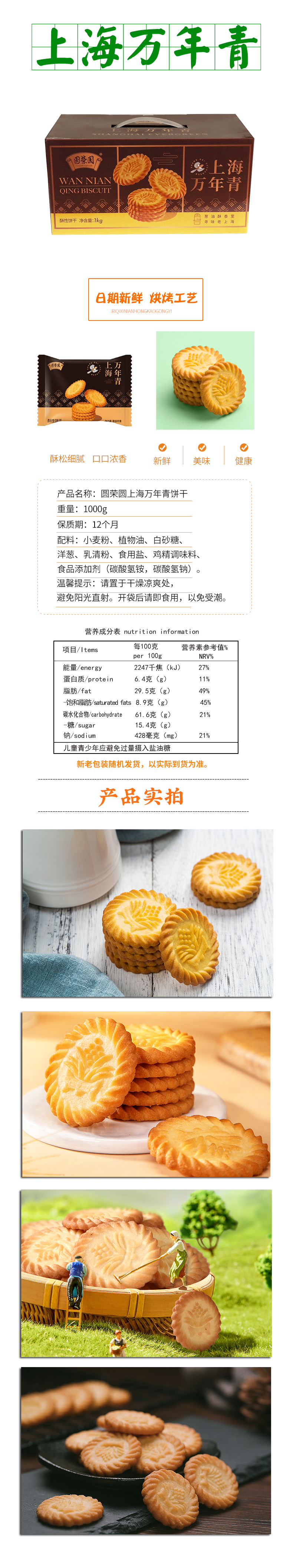 圆荣圆饼干1000g上海万年青饼干零食早餐休闲食品