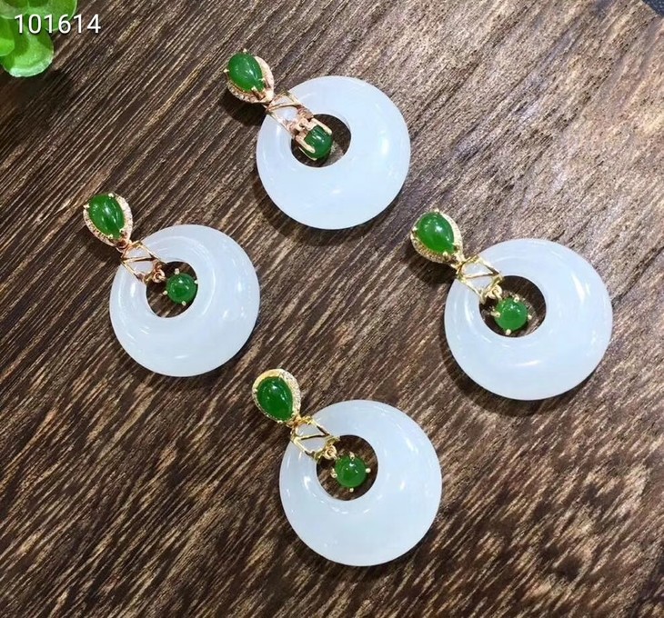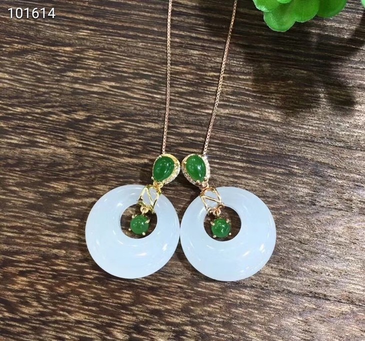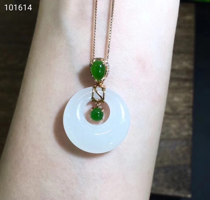 18k金镶羊脂玉平安扣挂件--,料子干净细腻,白度一级,裸石尺寸20x4×5mm,镶嵌钻石,赠送银项链。