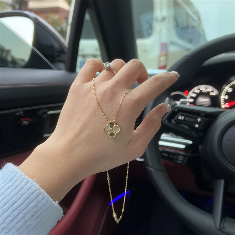 A406梵K雅宝镭射金色四叶草项链