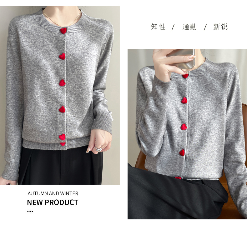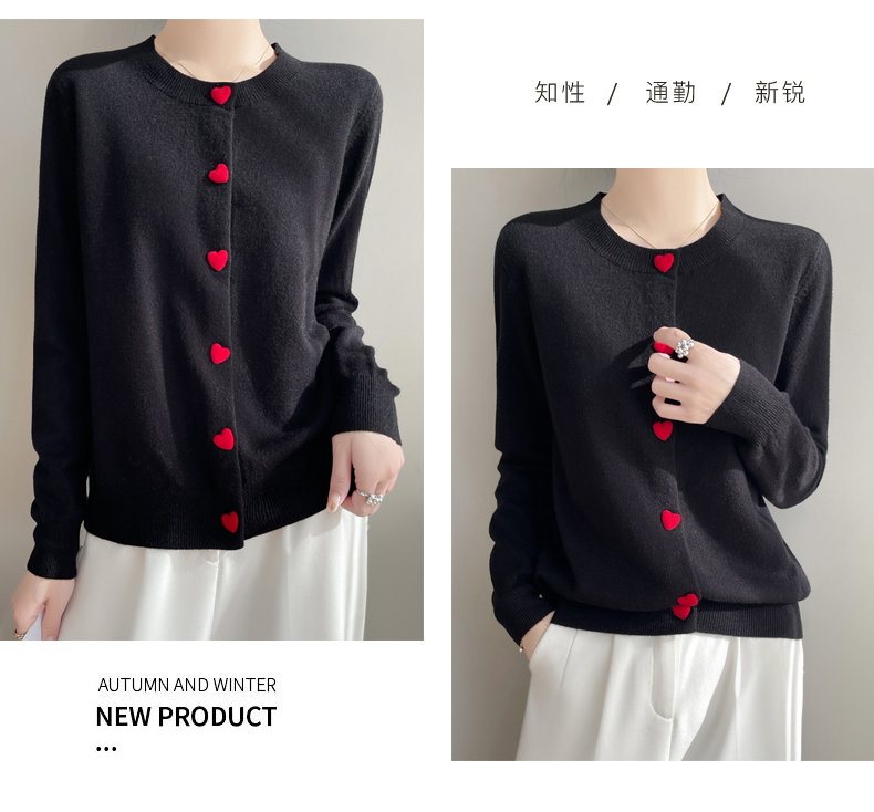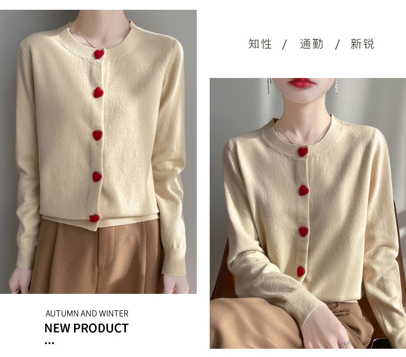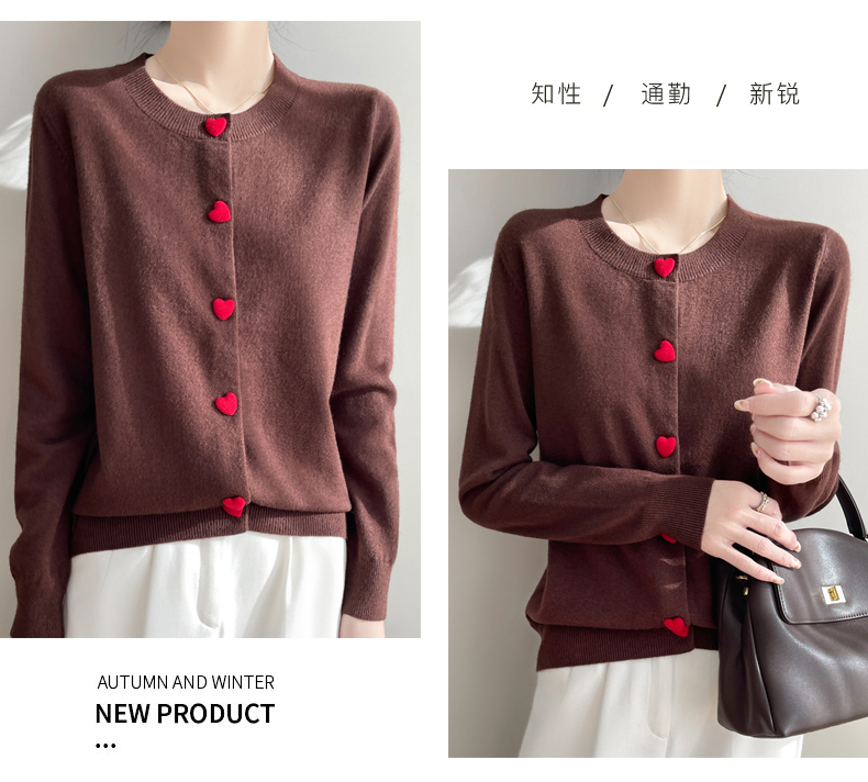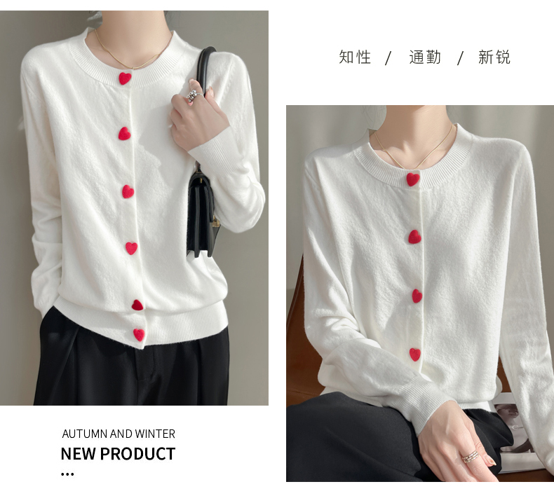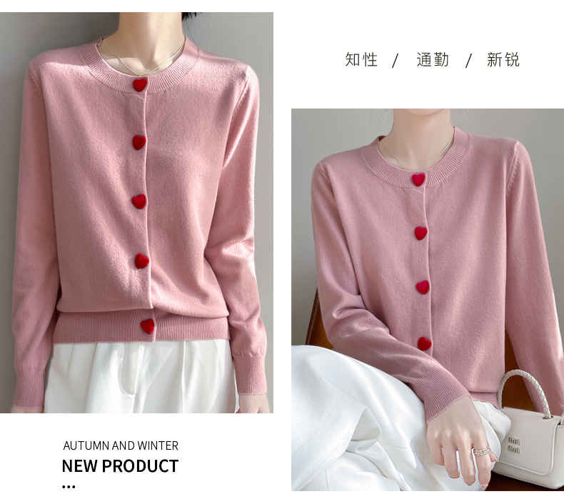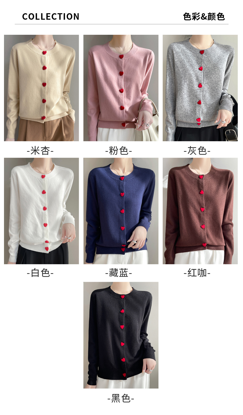 纤束马春季新款可盐可甜爱心扣针织开衫 N-511