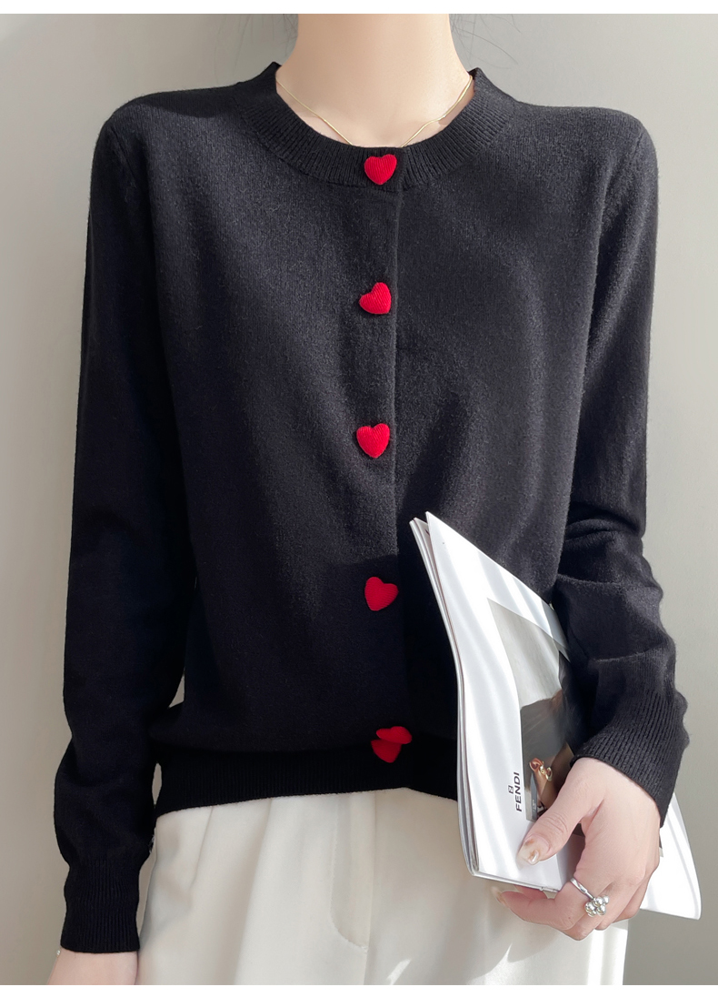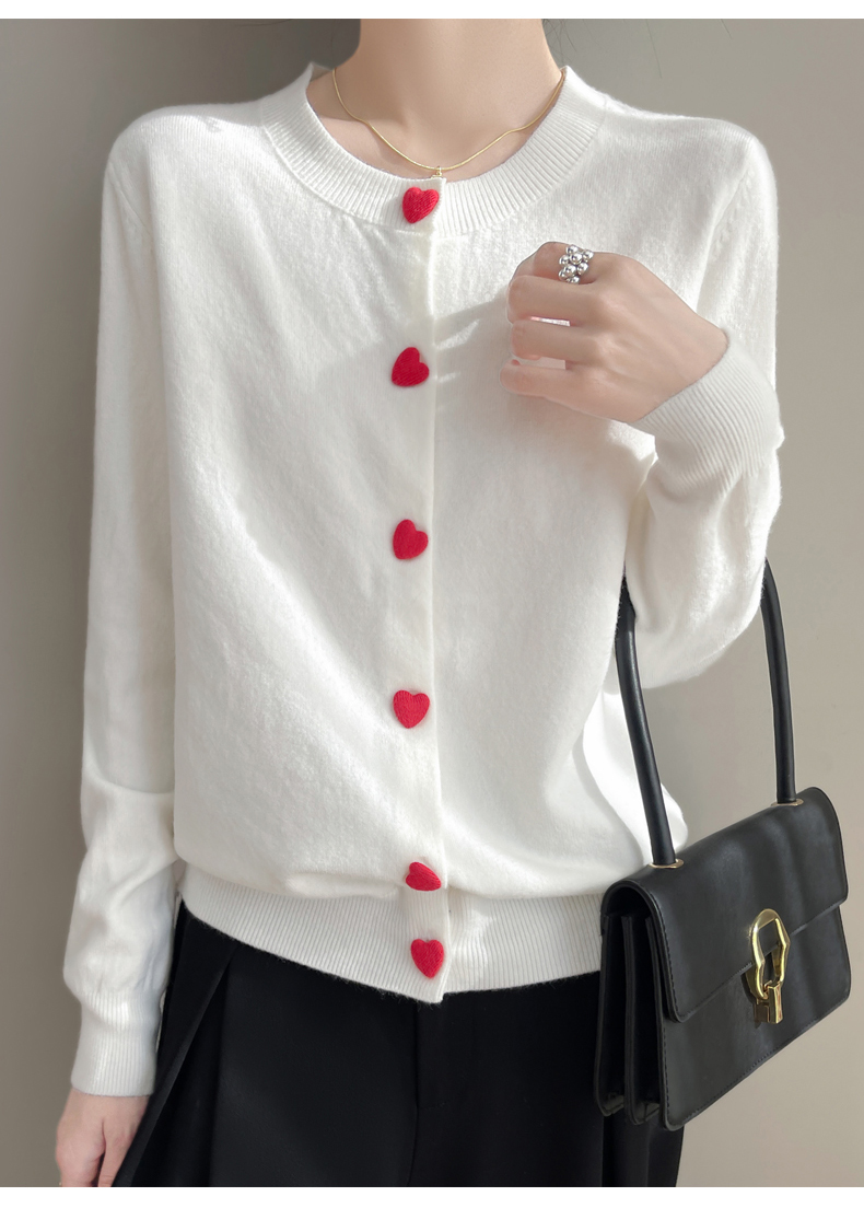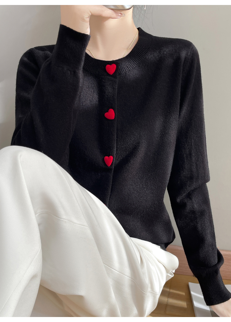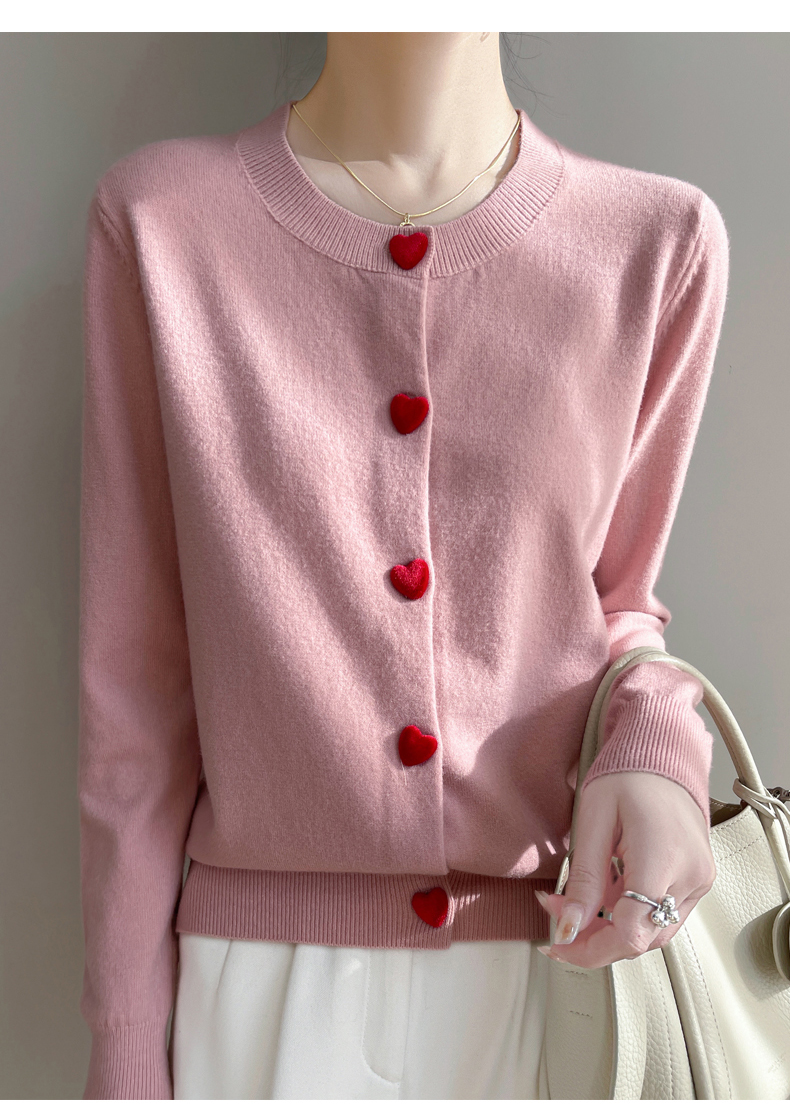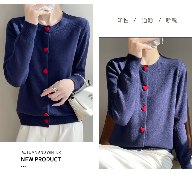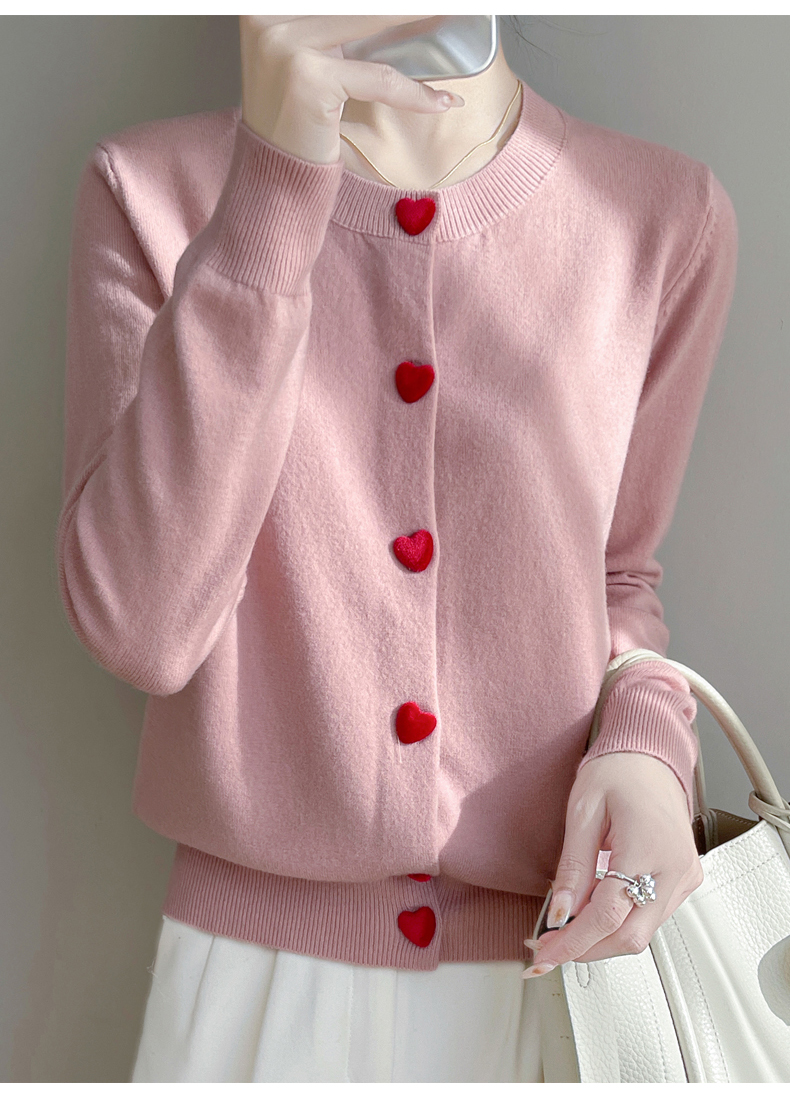 纤束马春季新款可盐可甜爱心扣针织开衫 N-511