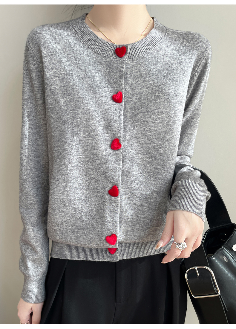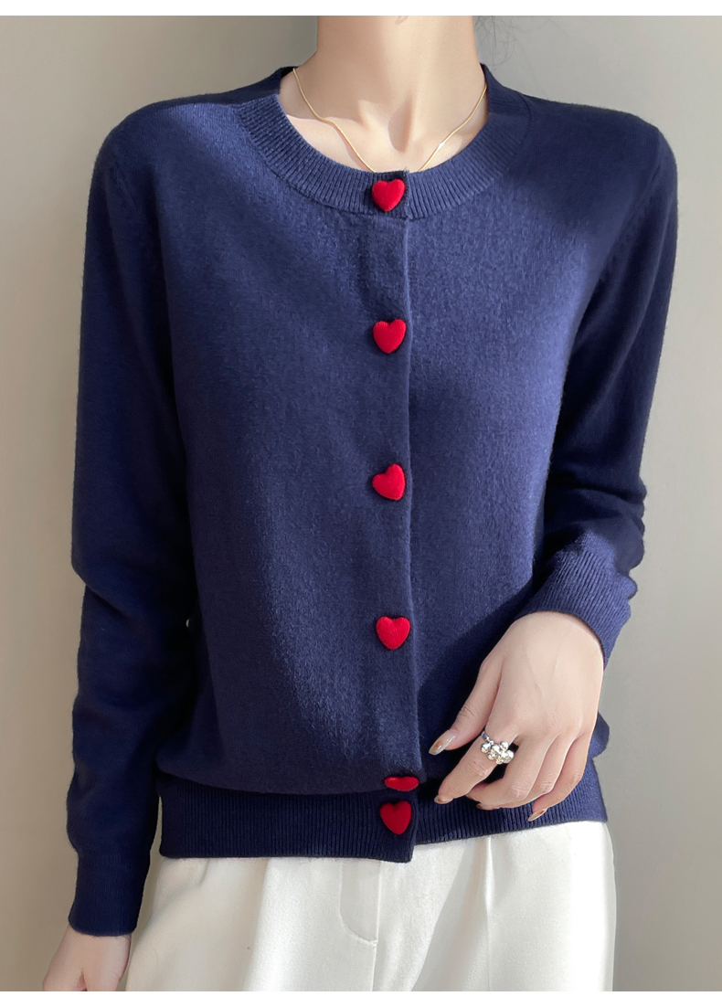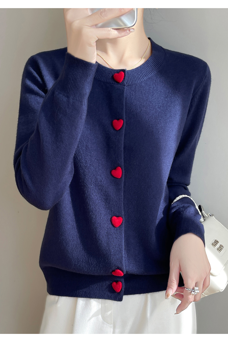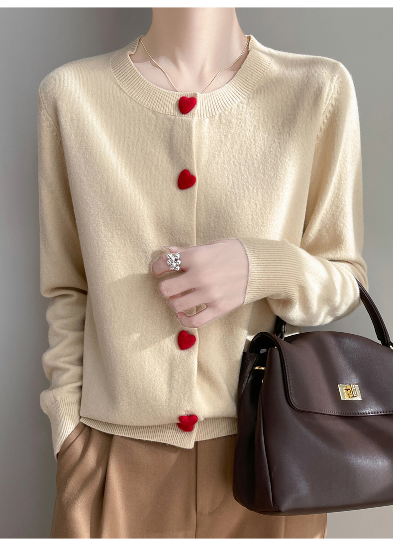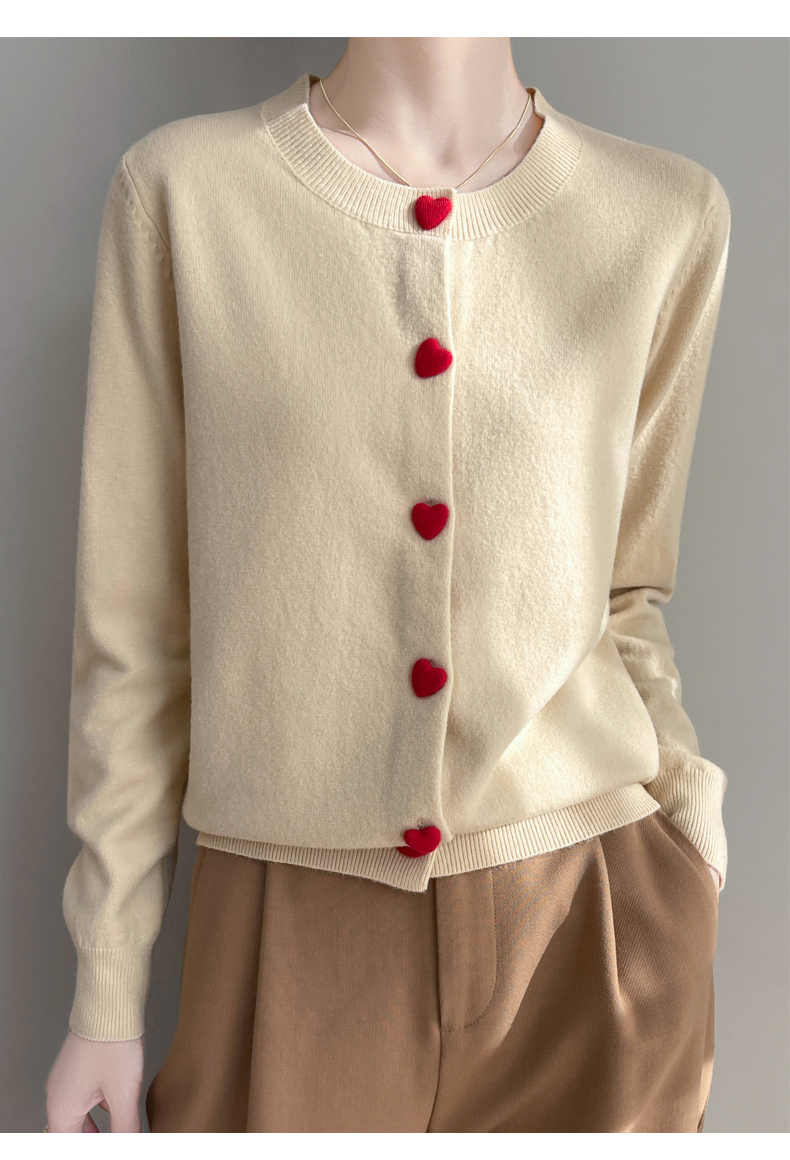 纤束马春季新款可盐可甜爱心扣针织开衫 N-511