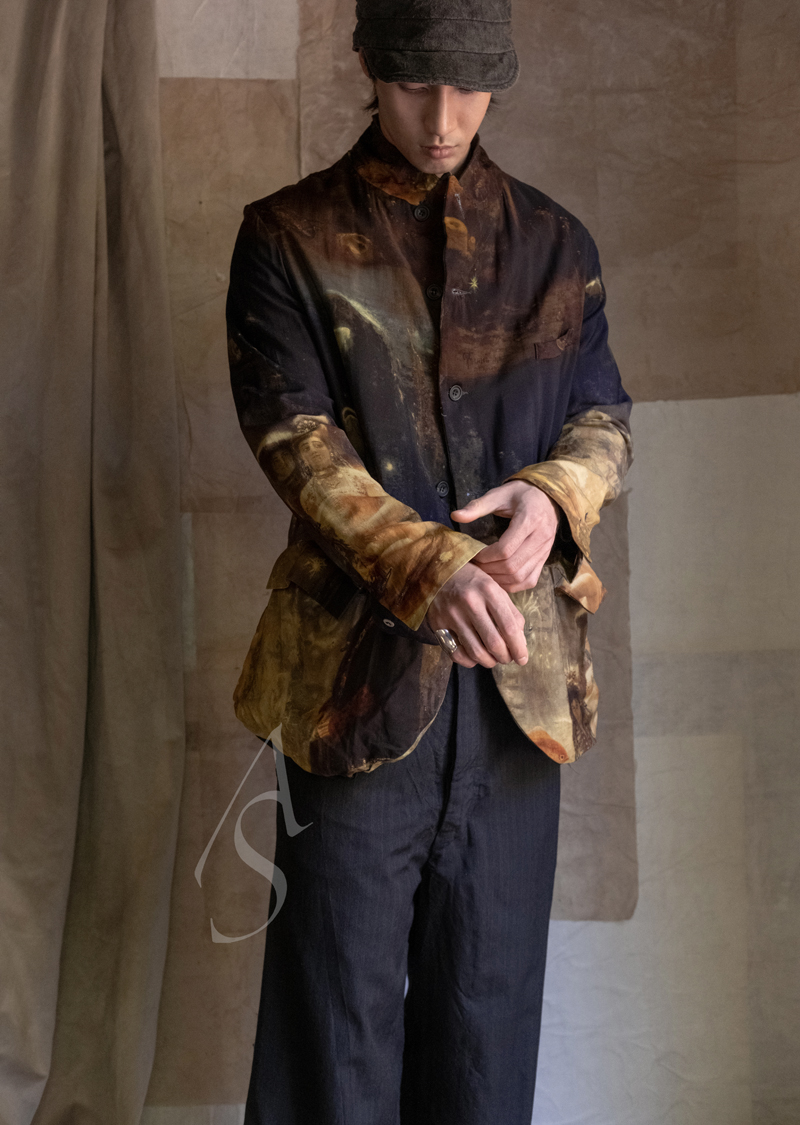 Paul Harnden 男士SADKO印花/浅黄色/浅灰色羊毛BLAZER西装外套