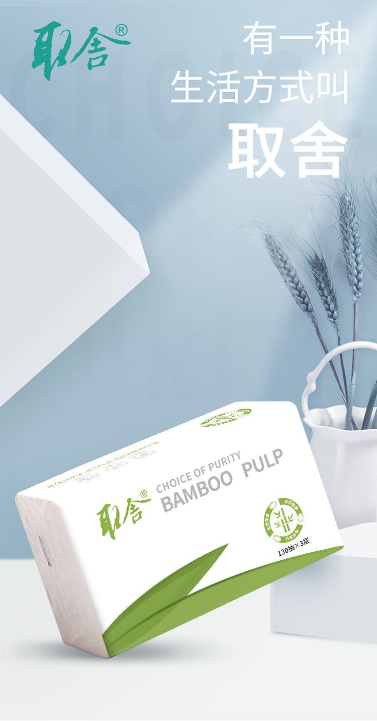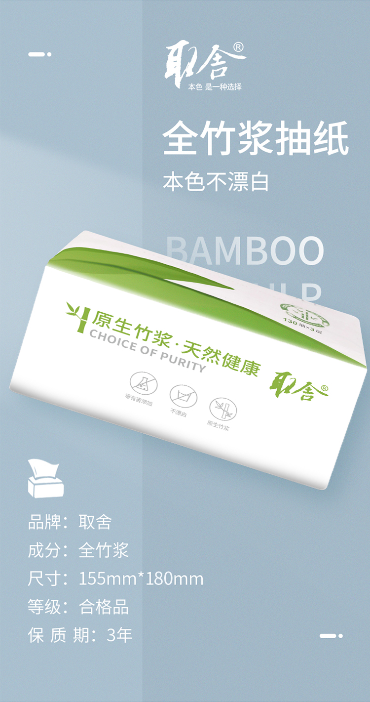 取舍全竹浆本色抽纸单提-3包/提