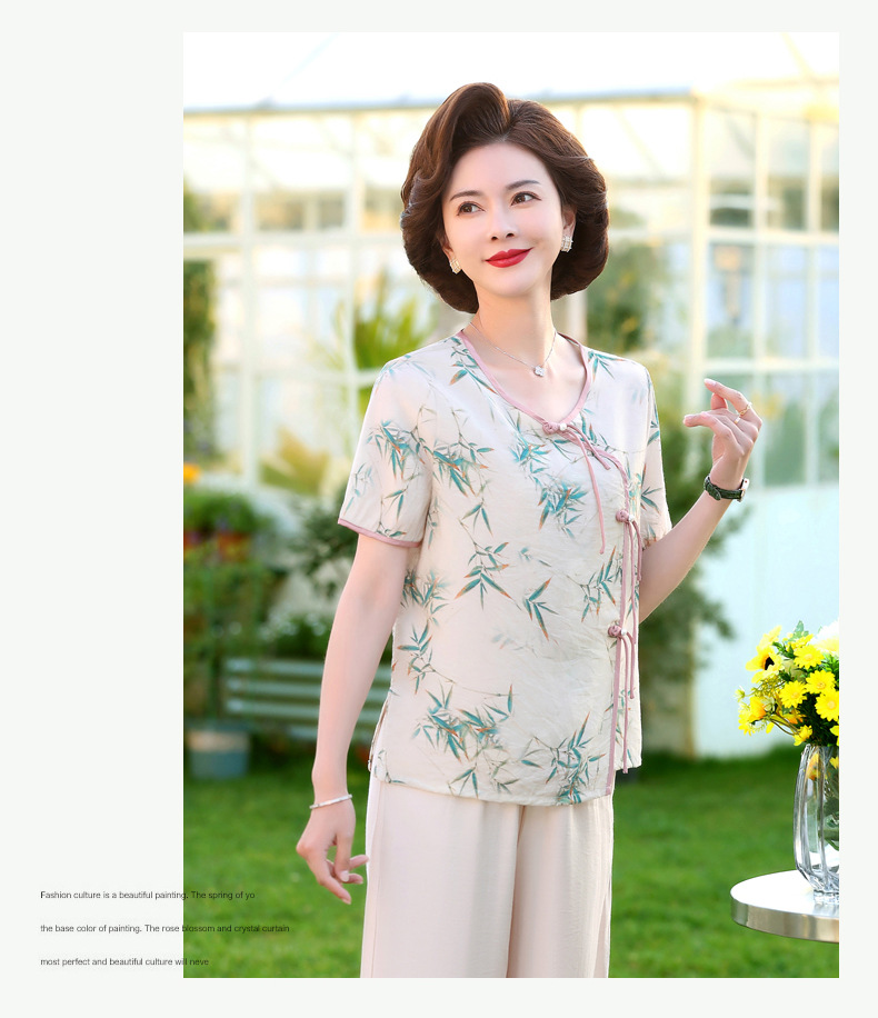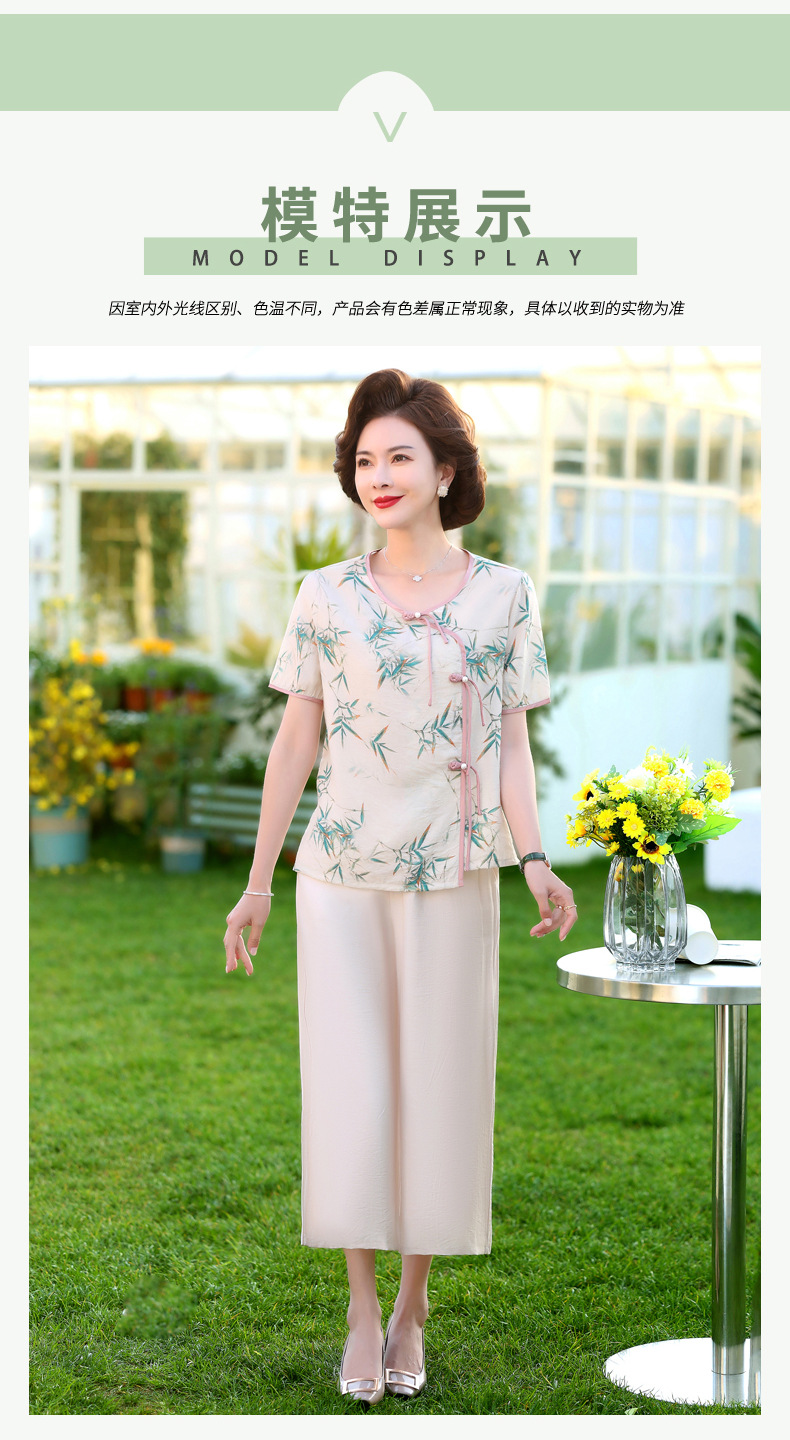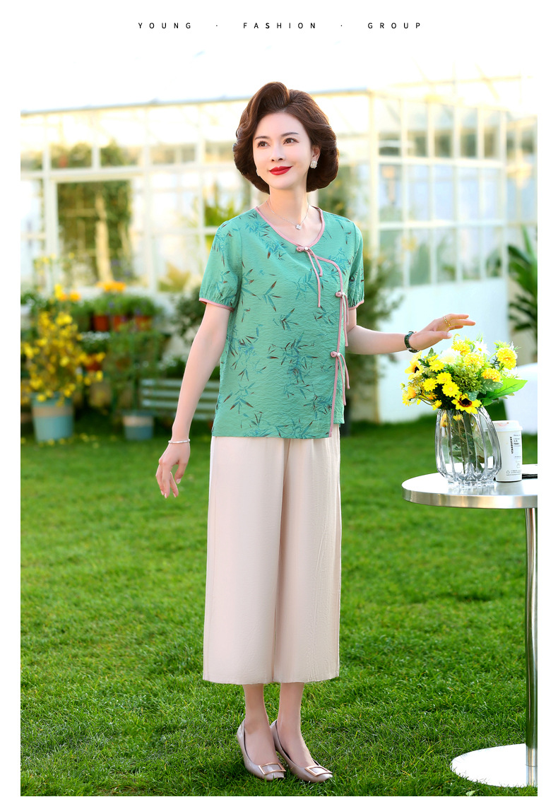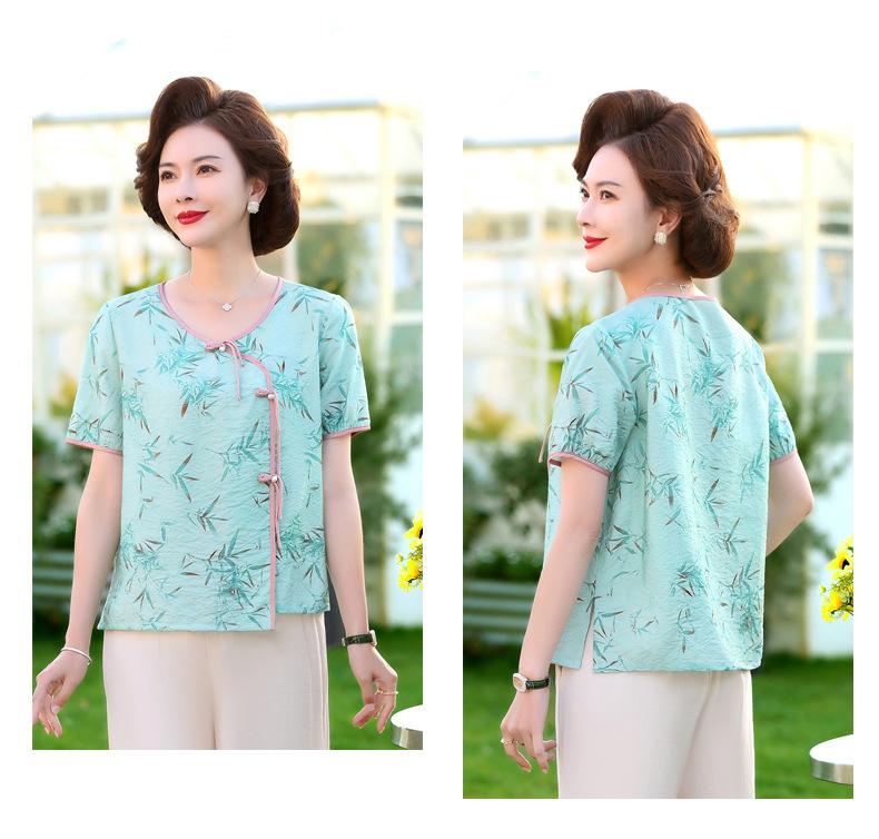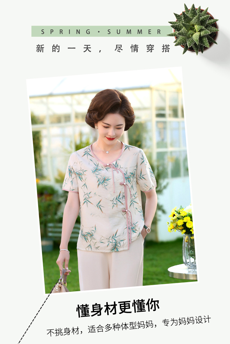 ML033-2335中老年人夏装新款碎花上衣女妈妈短袖套装妈妈上衣服太太T恤婆婆