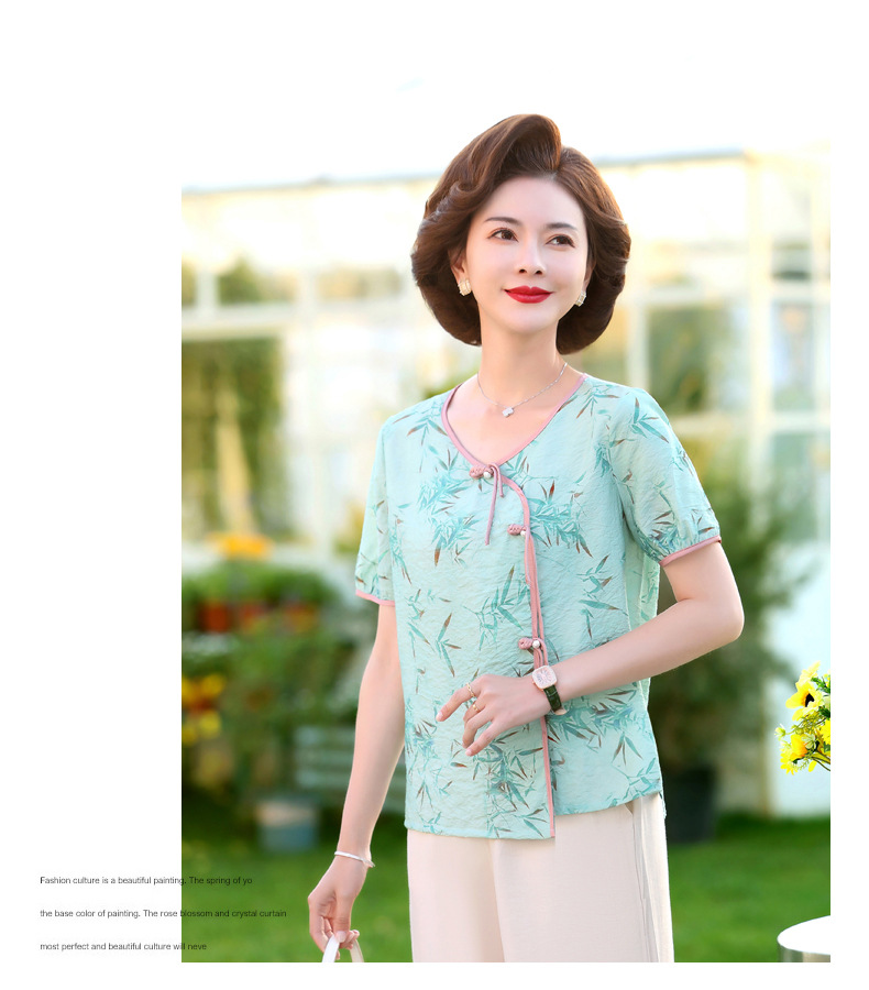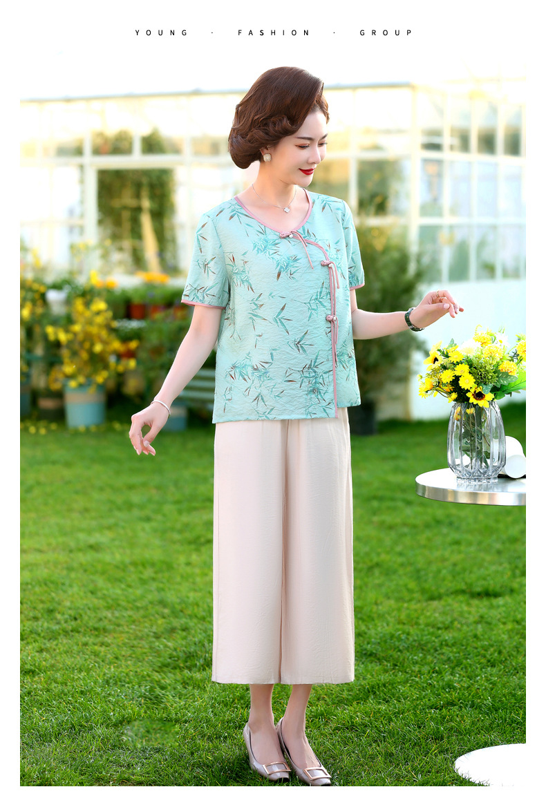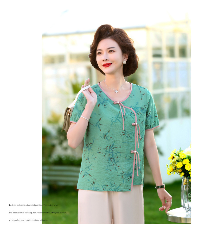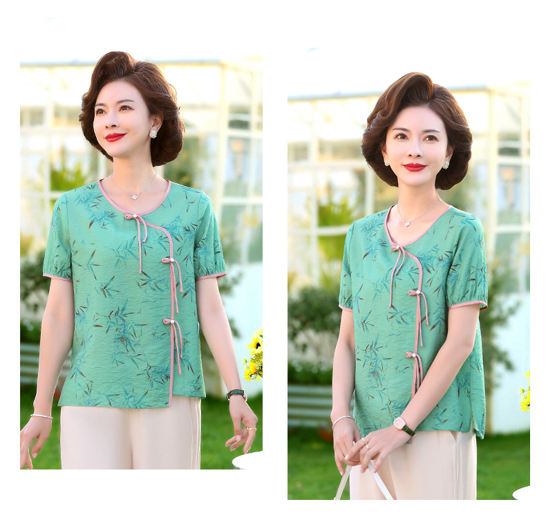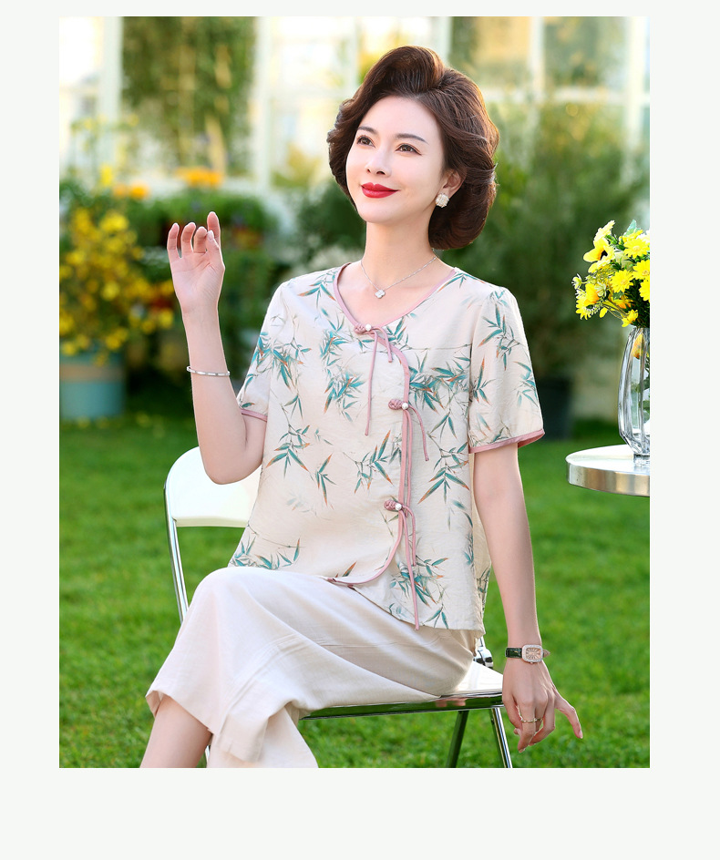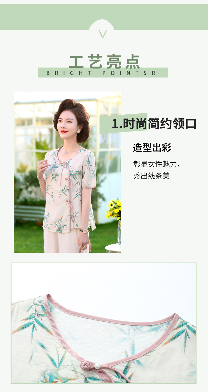 ML033-2335中老年人夏装新款碎花上衣女妈妈短袖套装妈妈上衣服太太T恤婆婆