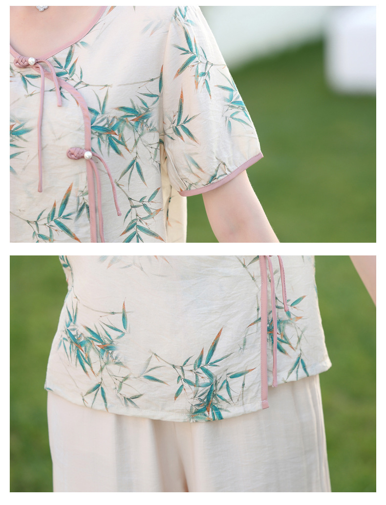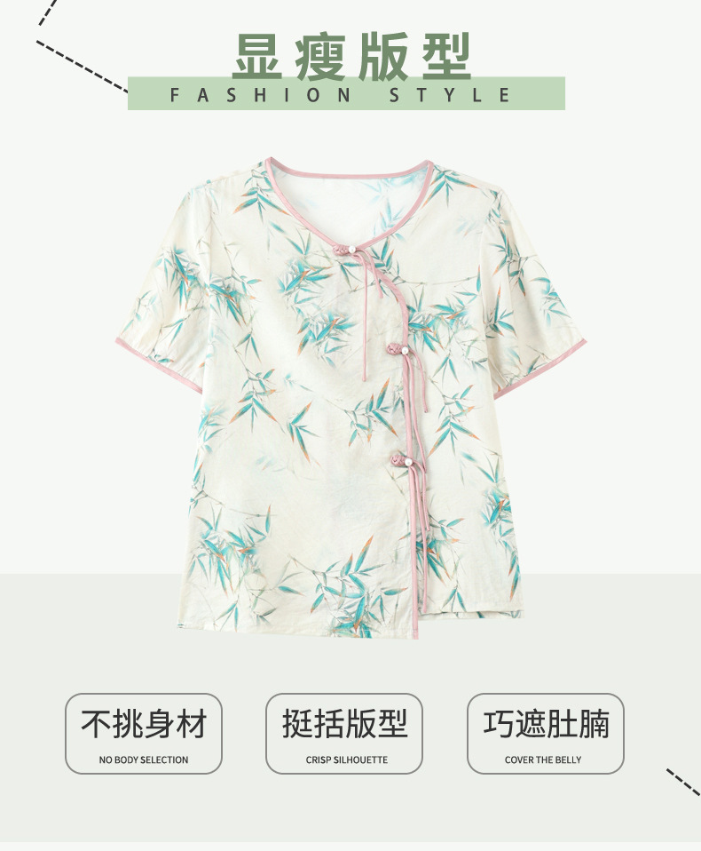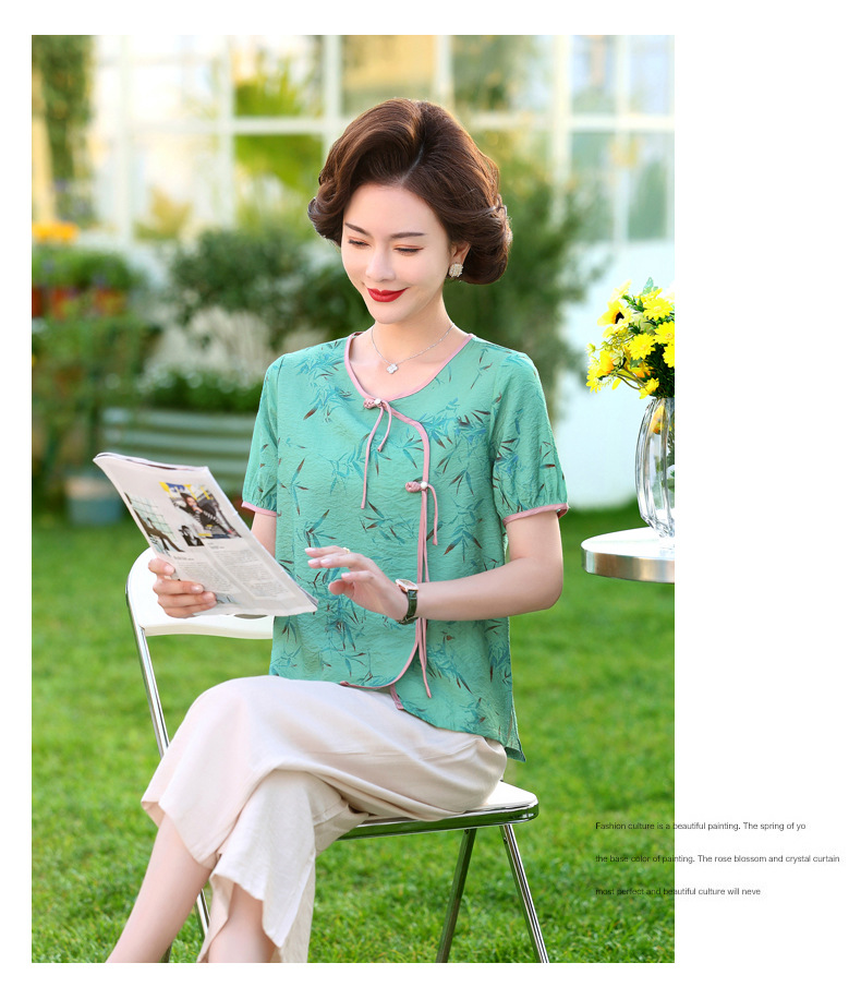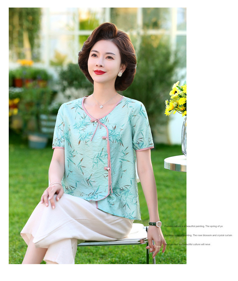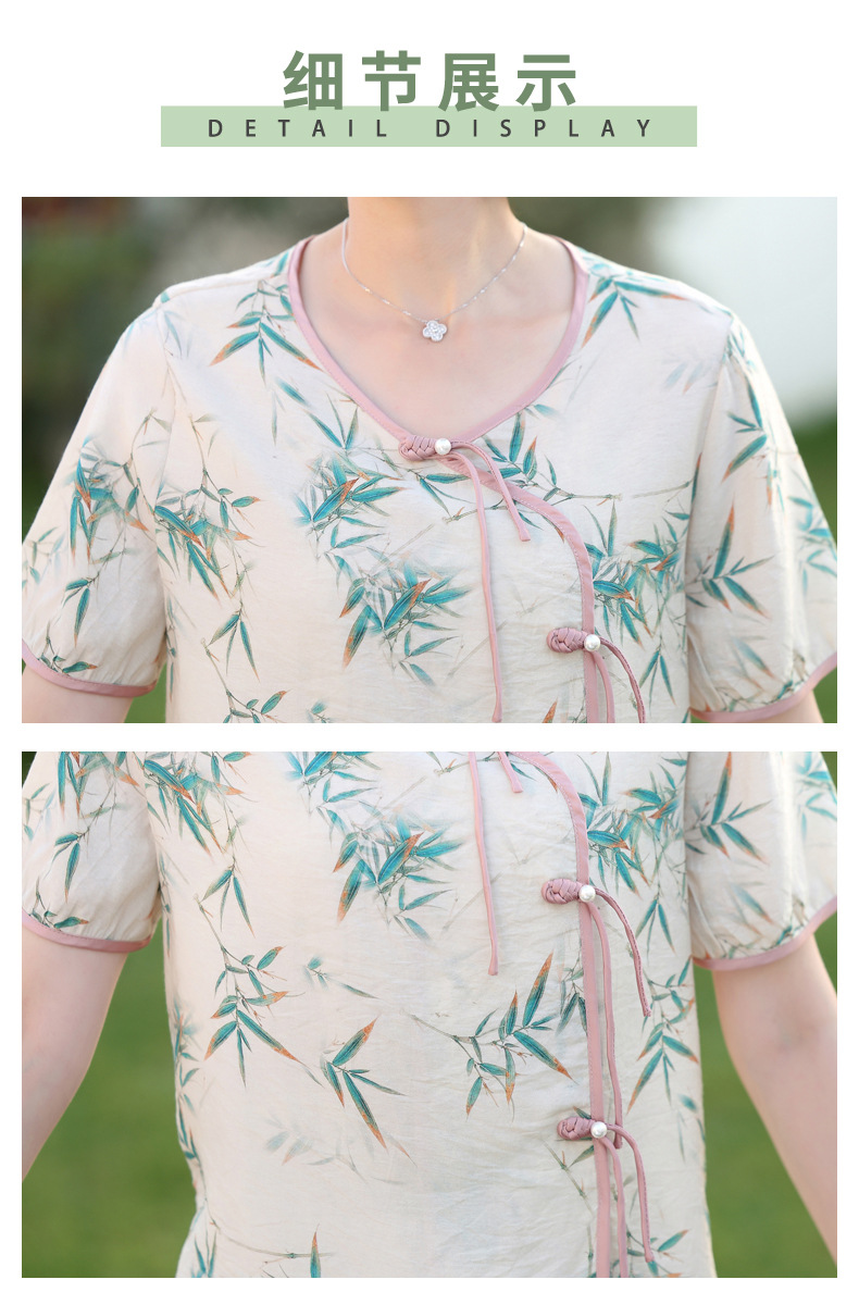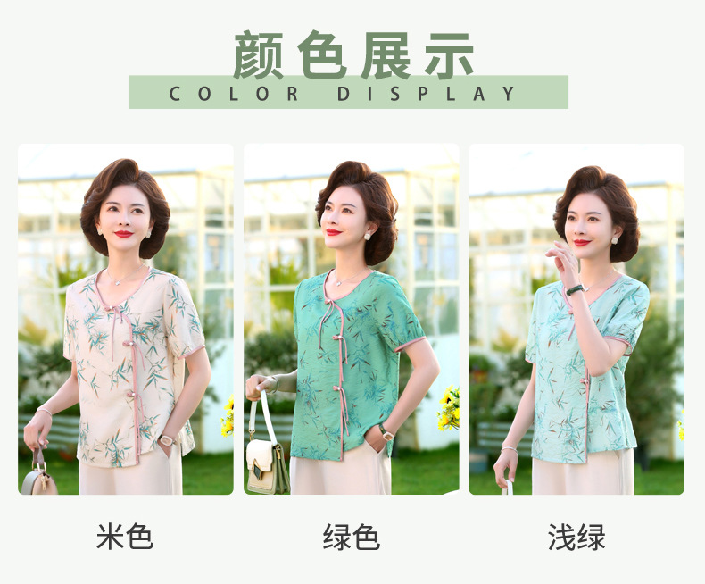 ML033-2335中老年人夏装新款碎花上衣女妈妈短袖套装妈妈上衣服太太T恤婆婆