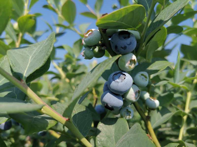 因为在种植过程没有使用膨大剂、高钾肥,果实颗粒偏小且大小不一,每颗蓝莓风味浓郁各不相同。因为成熟才采摘,所以果子更软,容易产生损耗。由于它的"不完美",使用有机方式种植的这颗蓝莓,风味和常规种植的相比更佳浓郁。