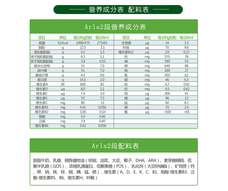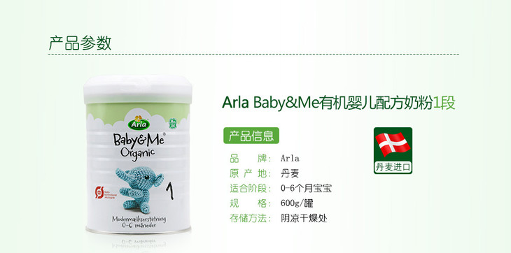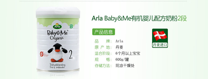 丹麦阿拉有机arla奶粉 2段 600g