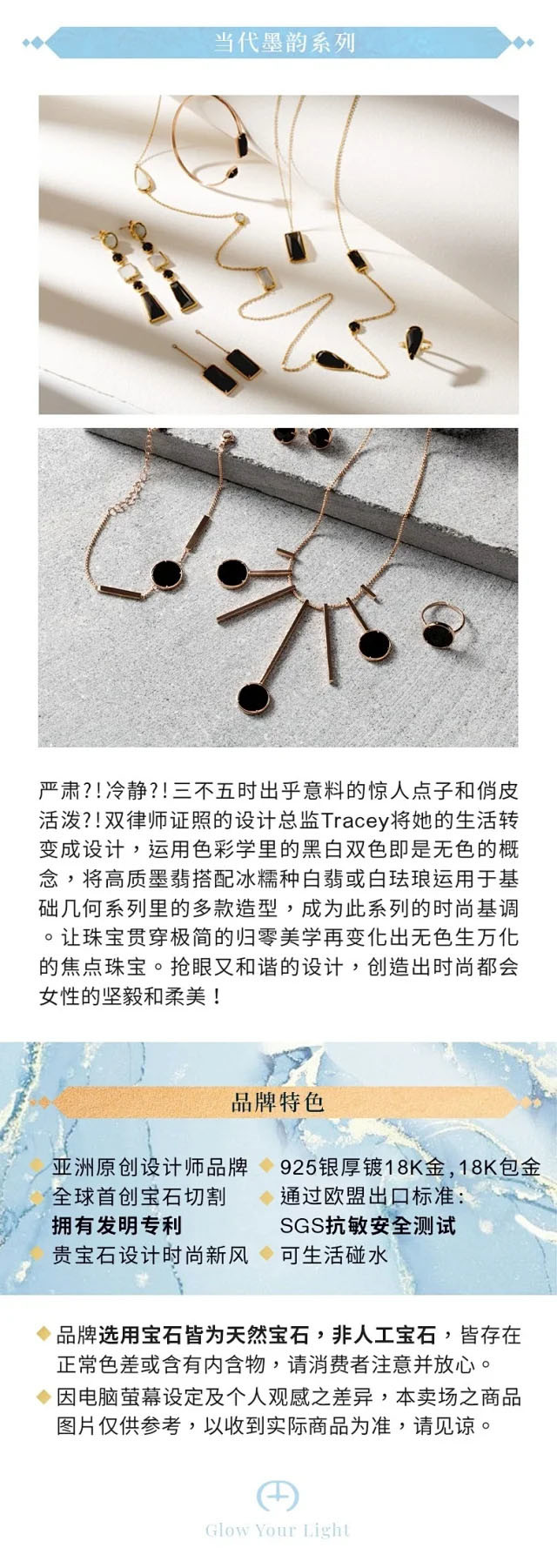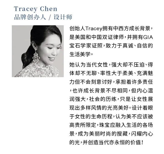 嚴肅?!冷靜?!三不五時出乎意料的驚人點子和俏皮活潑?!雙律師證照的設計總監Tracey將她的生活轉變成設計,運用色彩學裡的黑白雙色即是無色的概念,將高質墨翡搭配冰糯種白翡或白琺瑯運用於基礎幾何系列裡的多款造型,成為此系列的時尚基調。讓珠寶貫穿極簡的歸零美學再變化出無色生萬化的焦點珠寶。搶眼又和諧的設計,創造出時尚都會女性的堅毅和柔美!