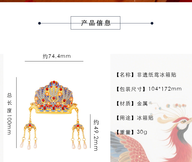 【凤仪鸾影】凤冠金属冰箱贴装饰文创磁吸博物馆旅游纪念工艺品