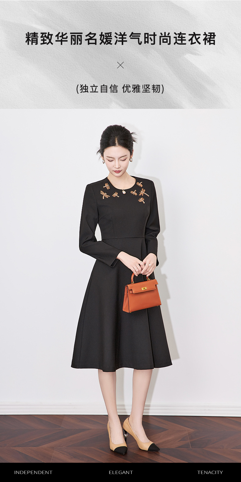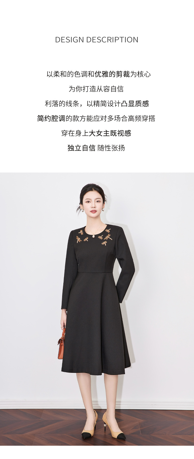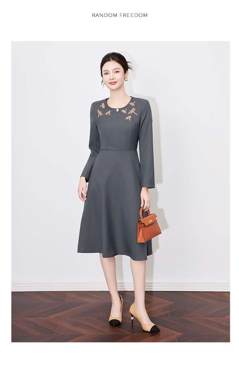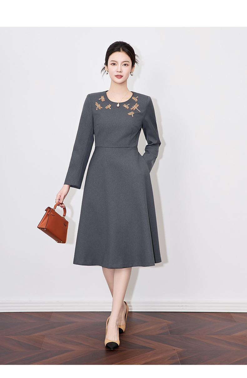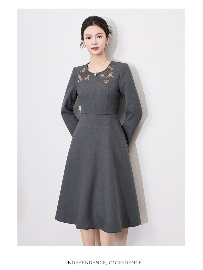 【高货wl】全新升级【铂金会员330/天猫439/差价109】(11636) 洛诗琳2025春季新款高级感轻奢精致亮丝钉钻收腰连衣裙