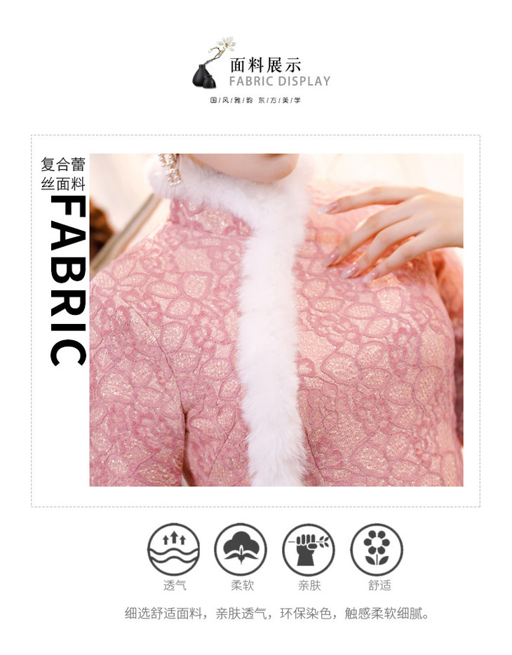 时尚改良,加厚兔毛领长袖旗袍XL-2343
