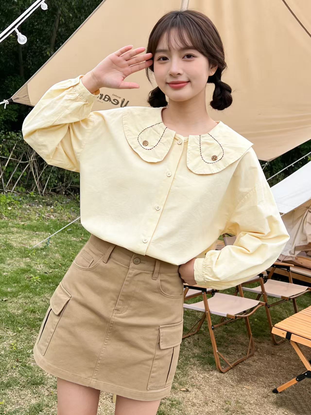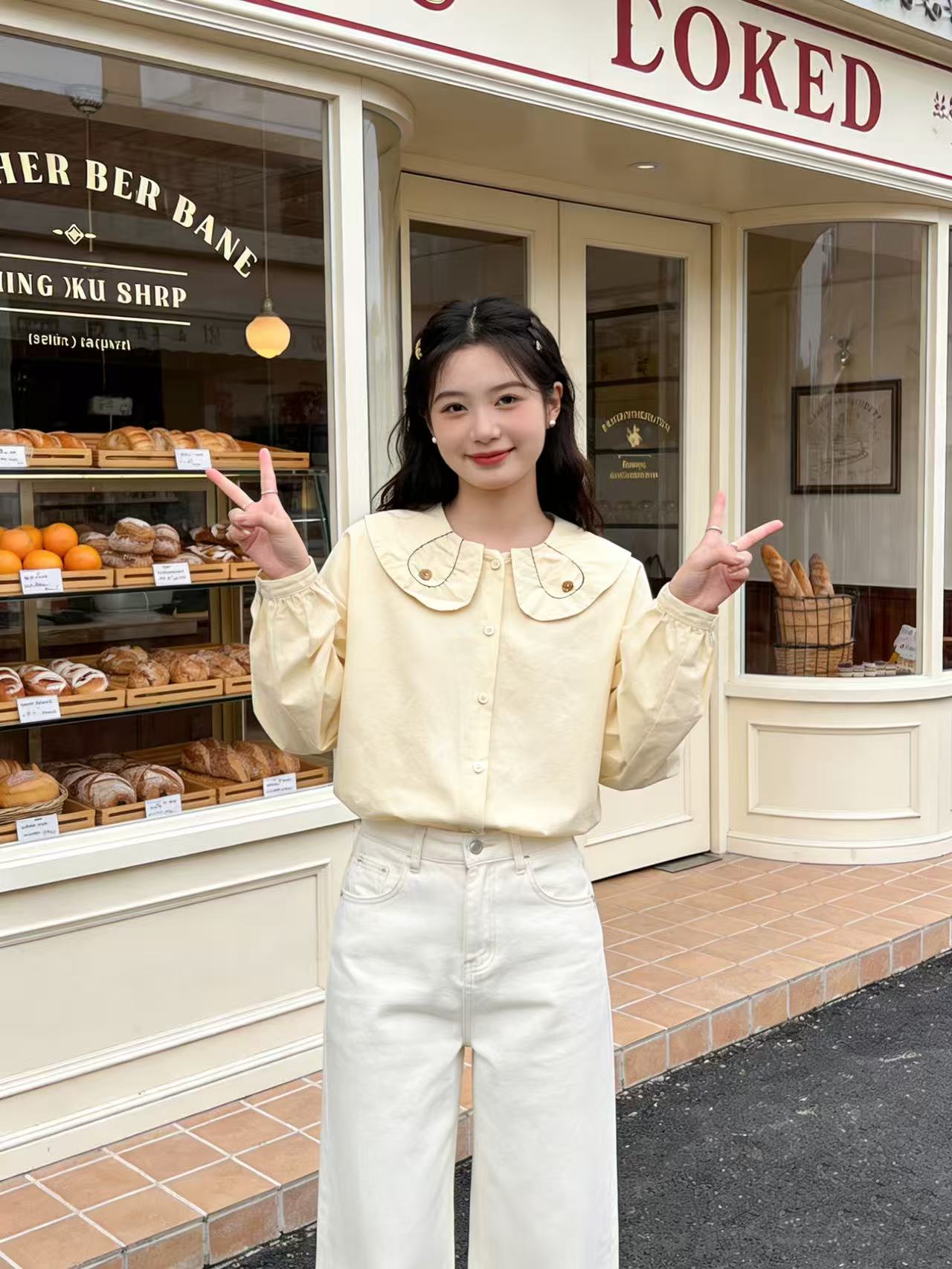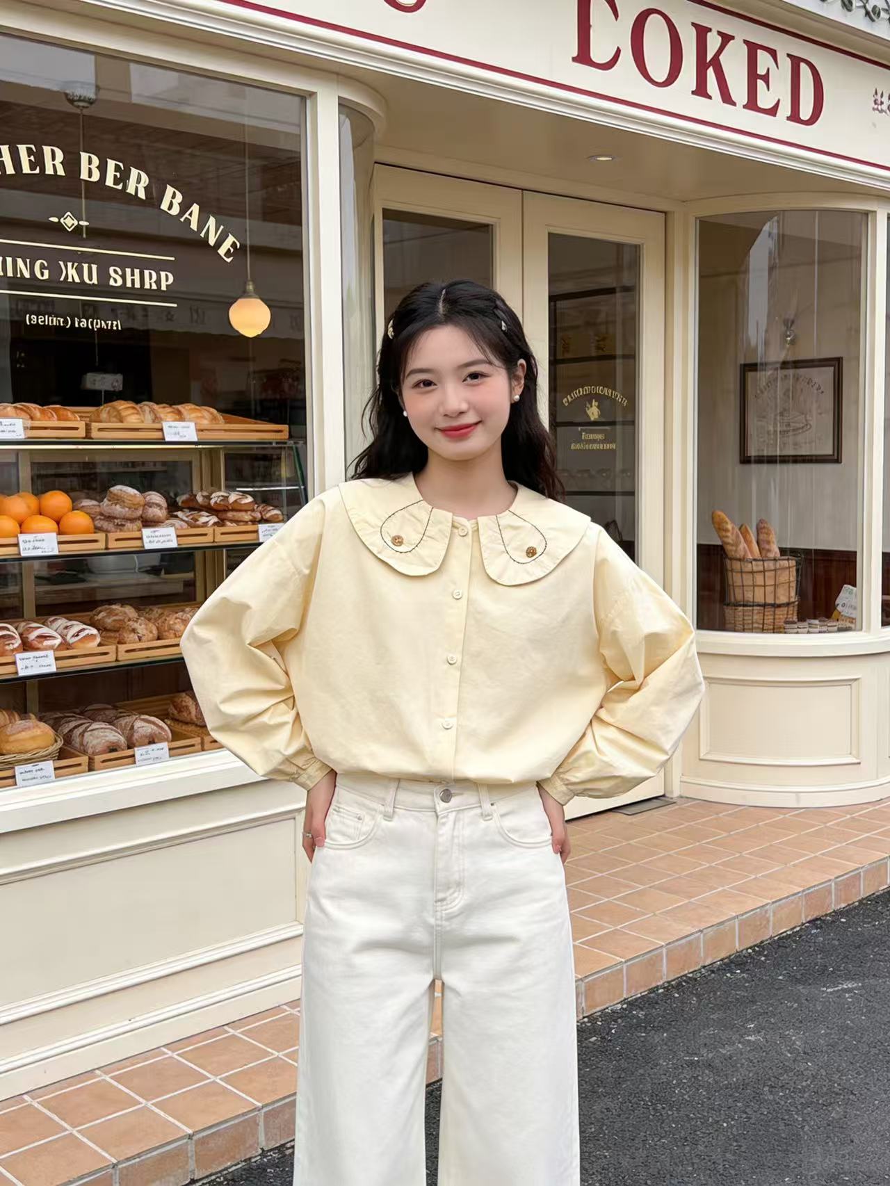 418良粉节|2026 活动爆款 品牌促【自营】衣周期 5156 韩版100%棉减龄翻领宽松娃娃领衬衫上衣-喜出
