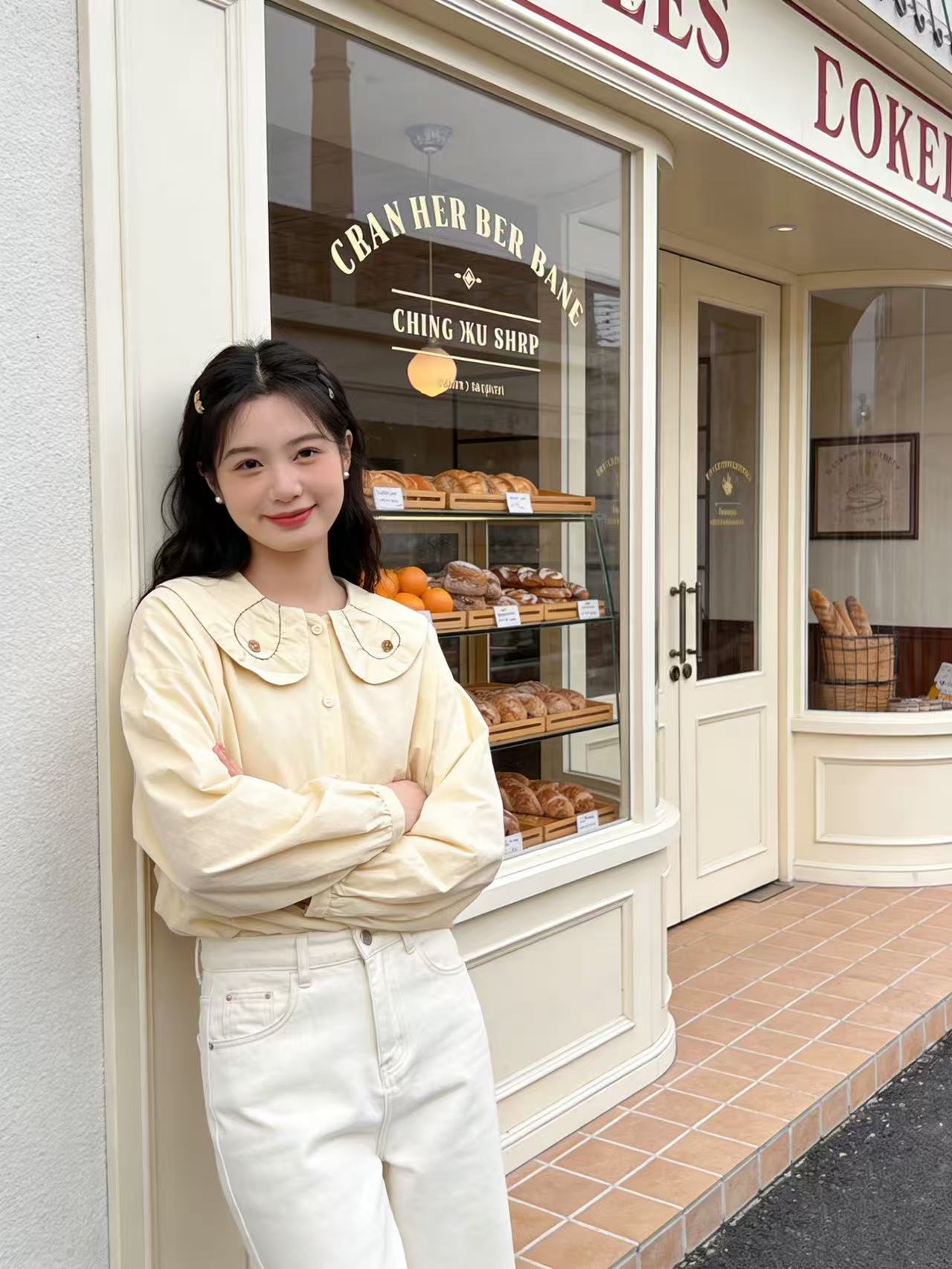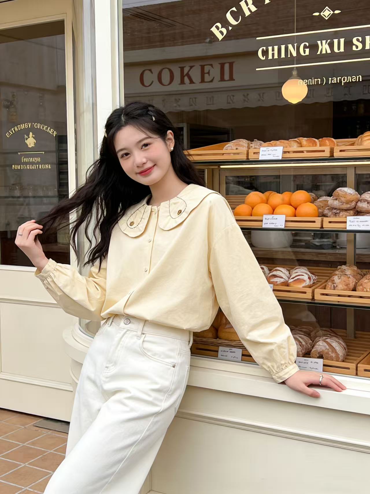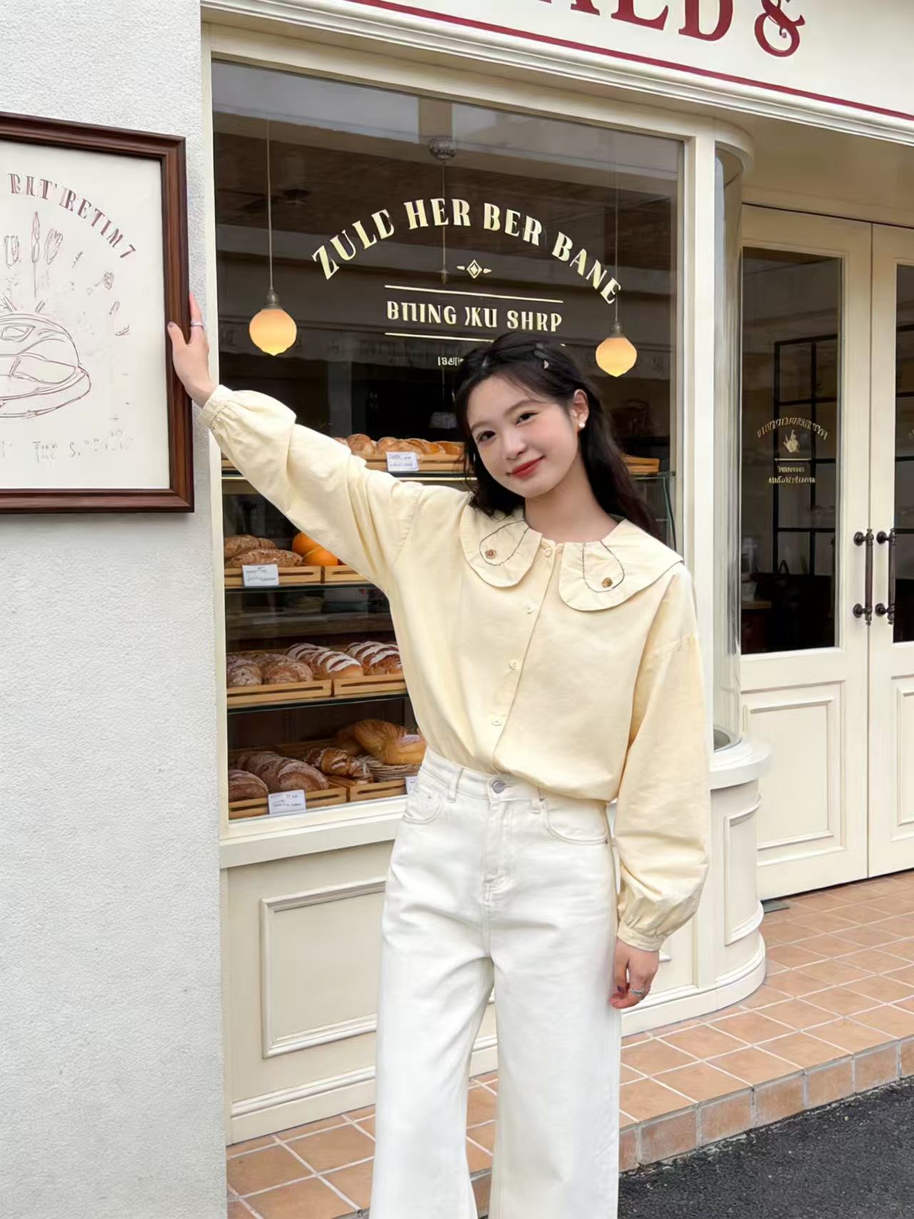 418良粉节|2026 活动爆款 品牌促【自营】衣周期 5156 韩版100%棉减龄翻领宽松娃娃领衬衫上衣-喜出