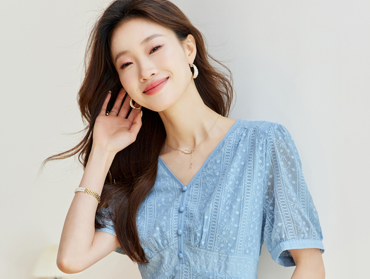 【预售3天】PY 夏日V领收腰优雅连衣裙 &SD3008
