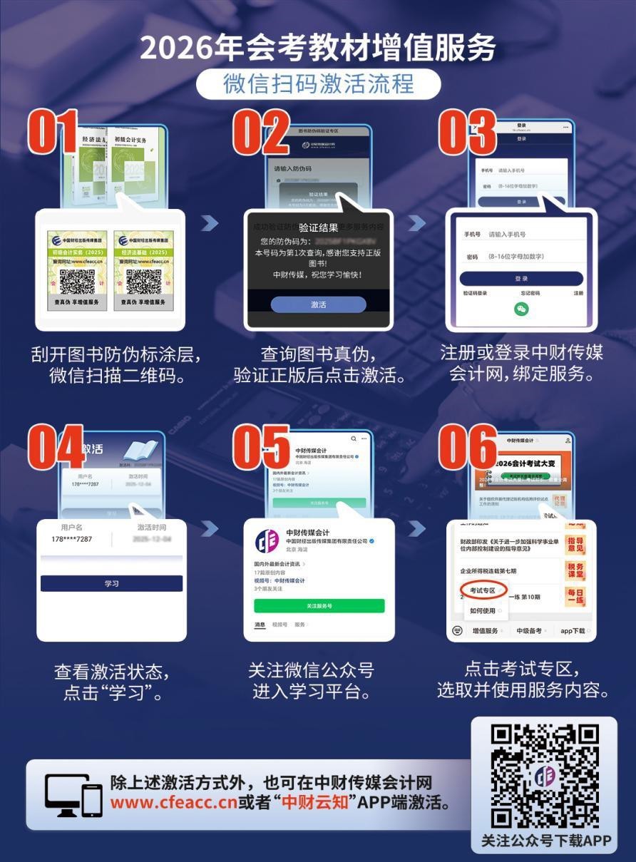 中国财经出版传媒集团本着为读者服务的宗旨,为2026年度全国会计专业技术资格考试辅导教材打造了形式多样、内容丰富的增值服务: