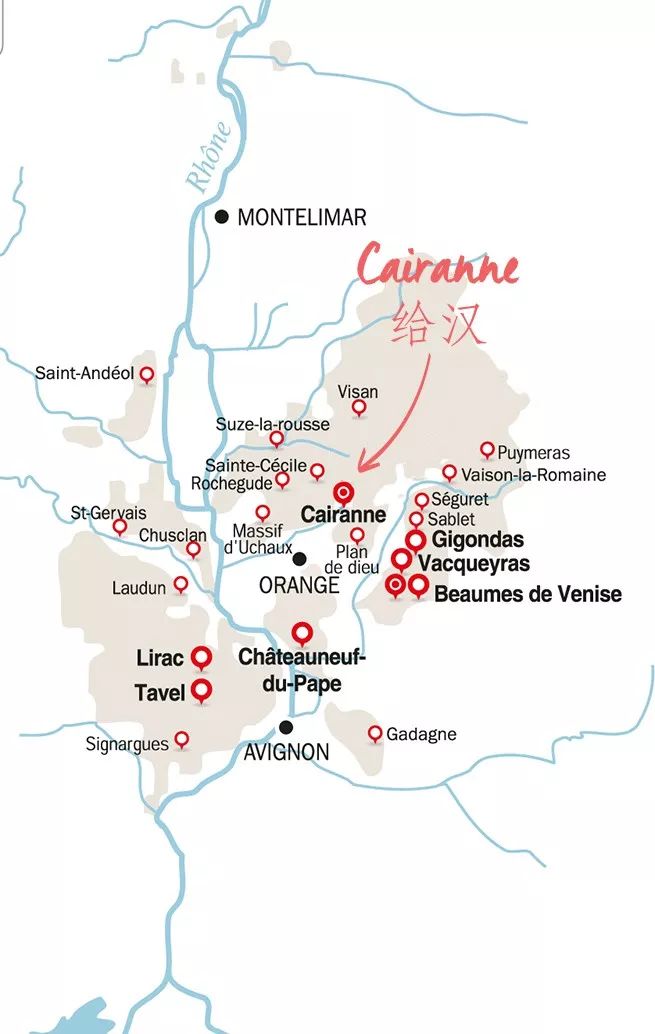 - 最后,艾格(Aygues)河流冲积阶地上的碎石土和砂质粘土,使得这里的葡萄酒圆润而柔和。
